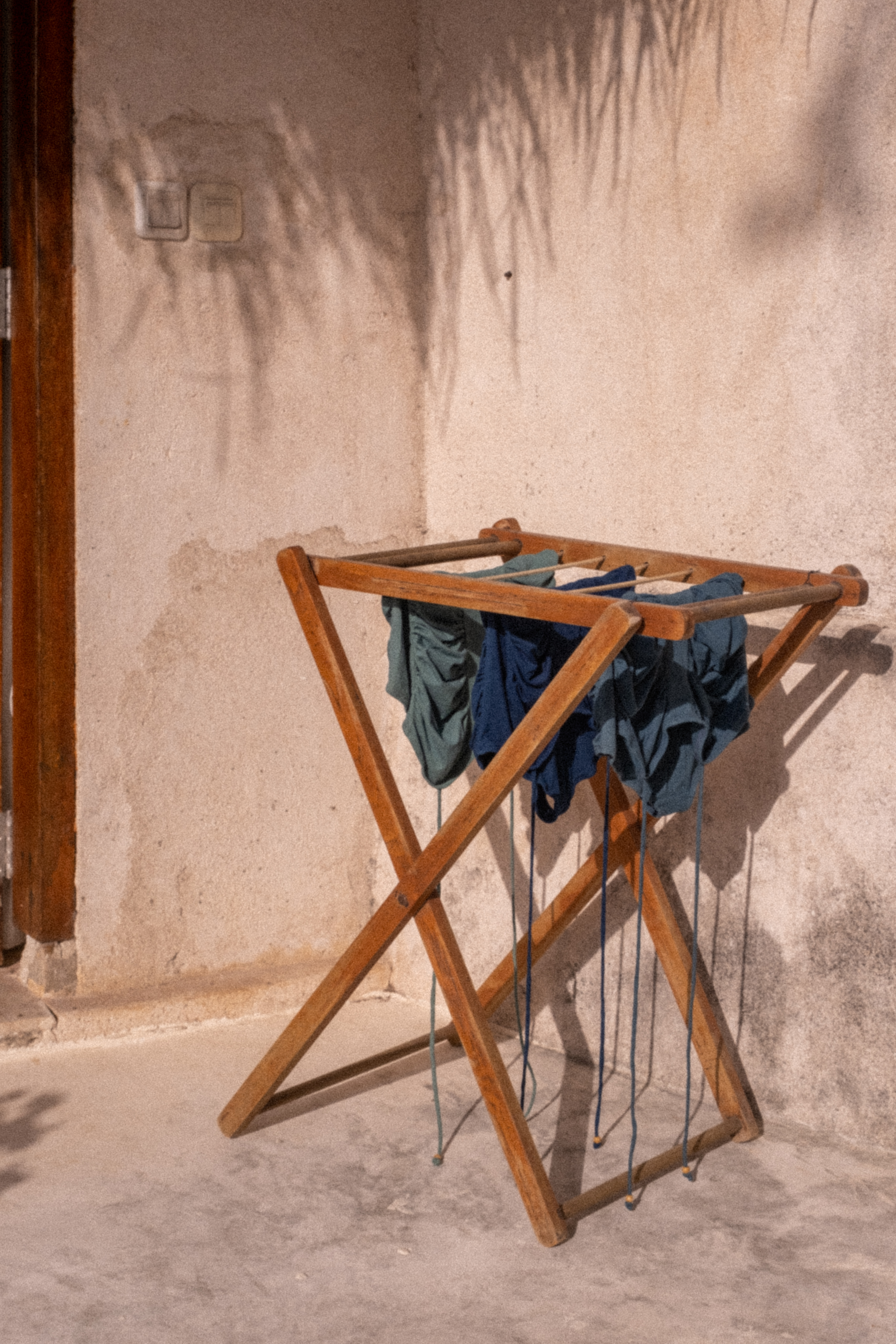 Én mindig is tudtam, mit szeretnék elérni, de a márka indulásakor nem tudtam mindent megvalósítani úgy, ahogy elképzeltem. Kerestem a lehetőségeket, és örültem, ha helyettesíteni tudtam valamit - lépésről, lépésre haladtam, sokszor menet közben jött a megoldás. Idestova kilenc éve nem eszek húst, ezért a bőrhasználat nem volt önazonos egy ponton túl. Mostanra sikerült teljesen magam mögött hagyni, az új kollekcióban erős kanavászt és organikus pamutot használok helyette. Tudom, hogy gombából vagy ananászból is készítenek bőrhelyettesítő anyagokat, de engem ezek sosem érdekeltek, nem is indultam el feléjük. A ruhák esetében mindig is természetes alapanyagokat használtam, és már a szintetikus festékanyagokat is sikerült teljesen kivonnom. Az összes textilt és cérnát egy ötven éve működő balinéz családi műhelyben festették. A sárga színt a mangólevél főzetéből nyerik, a terrakotta árnyalatot a mahagónifa és a szappanfa segítségével állítják elő. A khakizöldhöz a mangólevelet indigóval kell keverni, a tengeri mandula pedig feketére festi a textileket. A növényi festésben az a nehéz, hogy nem mindig pontosan ugyanaz az árnyalat jelenik meg a textilen, ugyanakkor ez a játékossága nagyon szerethető. Most kezdtem el felfedezni a növényi festést, és úgy érzem, emiatt is izgalmas dolgok várnak rám a jövőben.