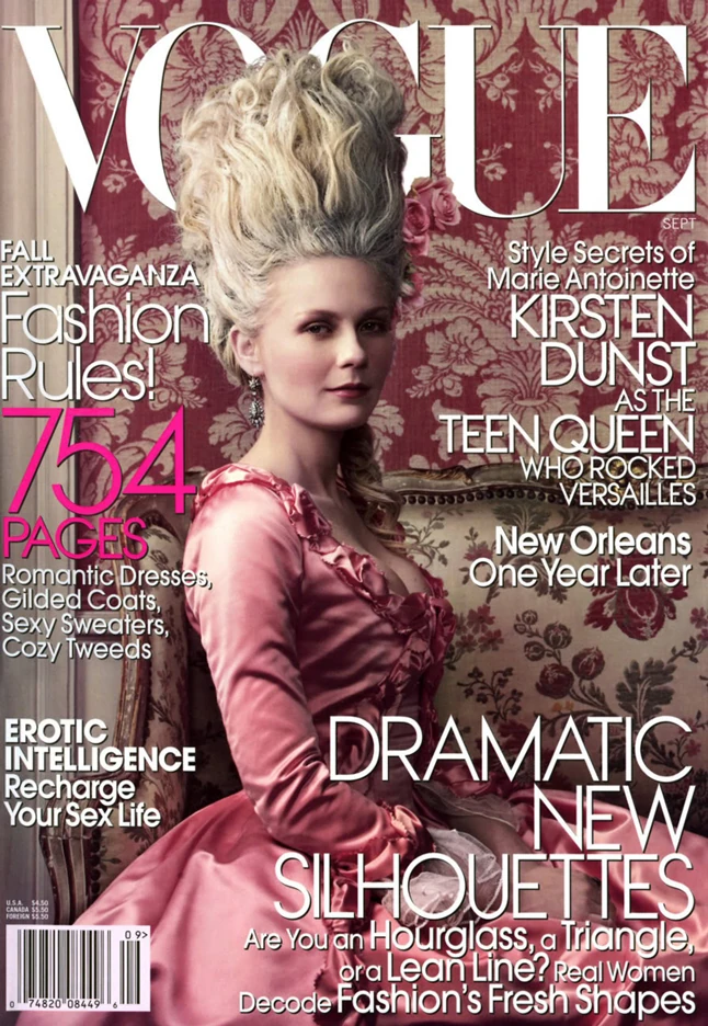 2006: Kirsten Dunst - A színésznőnek épp abban az időben jött ki a Marie Antoinette című filmje és láthatóan mindez nagy hatással volt a fotózás hangulatára is. A képek tökéletesen bizonyítják Annie Leibovitz zsenialitását.