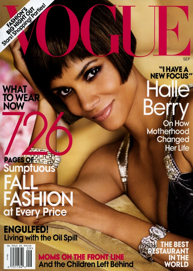 2010: Halle Berry - 1989 óta nem szerepelt színes bőrű nő a Vogue címlapján, ám Halle Berry nem hagyhatta ki ezt az ajánlatot. A színésznő akkor már 3 éve nem adott interjút és a nyilvánosságtól is félrevonult, hogy minél több időt töltsön kislányával. Ennek ellenére remekül festett a képeken és olyan tervezők ruhájában pózolt, mint Giorgio Armani, Marc Jacobs, Escada és Vera Wang.