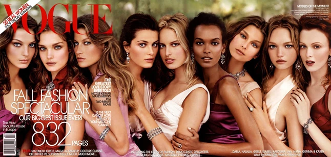 2004: Daria Werbowy, Natalia Vodianova és Gisele Bündchen - A 2004-es kiadás nem éppen szokványos címlappal jelentkezett, tekintve hogy 3 szupermodell is pózolt rajta. A képeket Steven Meisel készítette.