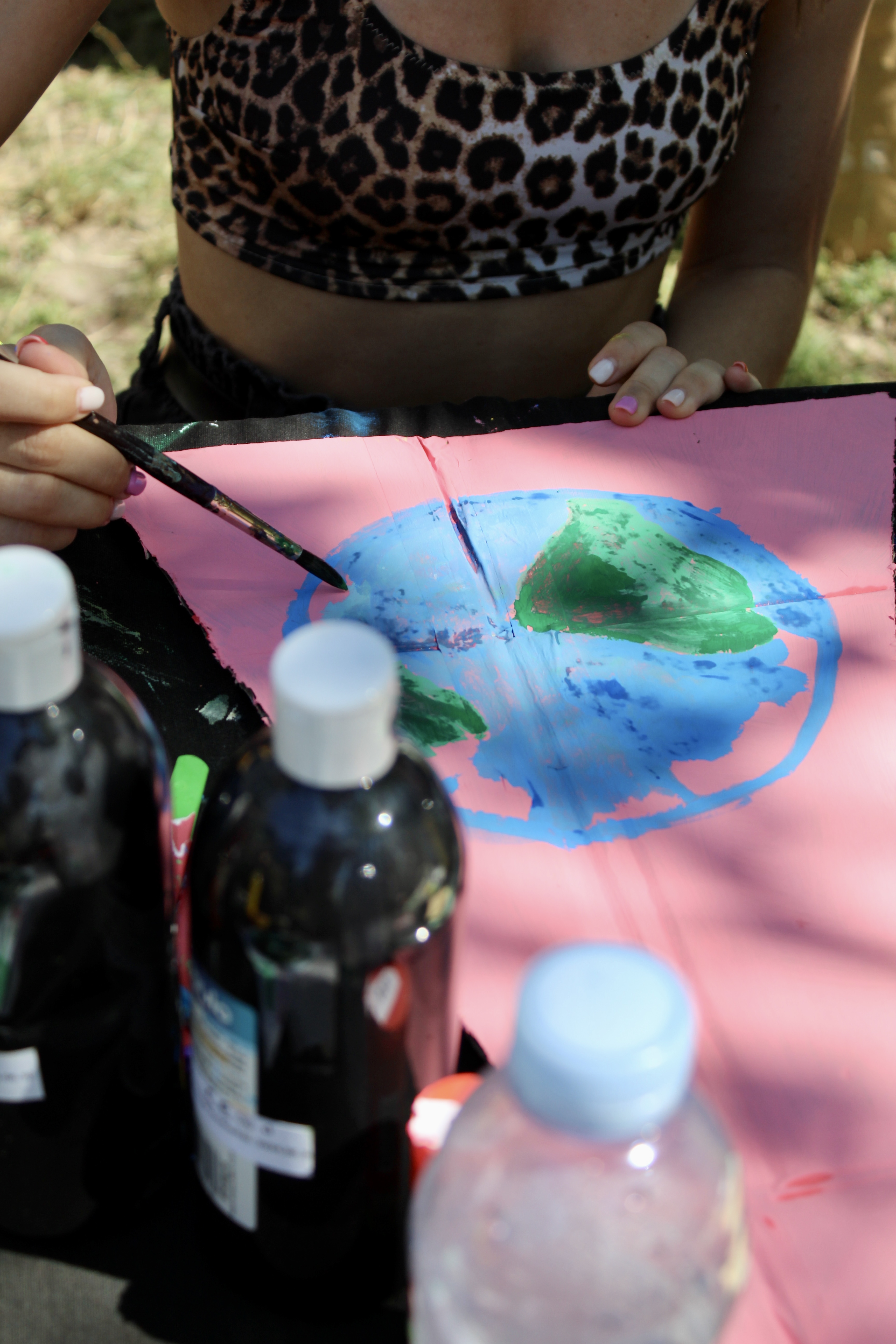 A Pinkponilo, aki a hétköznapokban ruhakészítéssel és tervezők kollekcióinak zöldítésével foglalkozik, most egy interdiszciplinárisabb művészeti projektbe vágta a fejszéjét. „A fesztiválozók a héten transzparenseket festenek velünk, így kifejezhetik a véleményüket a klímaváltozás problémaköréről és a fenntarthatóságról. Kicsik és felnőttek egyaránt alkotnak, az egyik legfiatalabb aktivista egy kétéves kisbaba volt, míg a legidősebb festők nyugdíjaskorúak voltak. Augusztus 15-én a Sziget munkatársai kiosztják a napokban készült kreatív munkákat, amivel a fesztiválozók fel tudnak majd vonulni.”