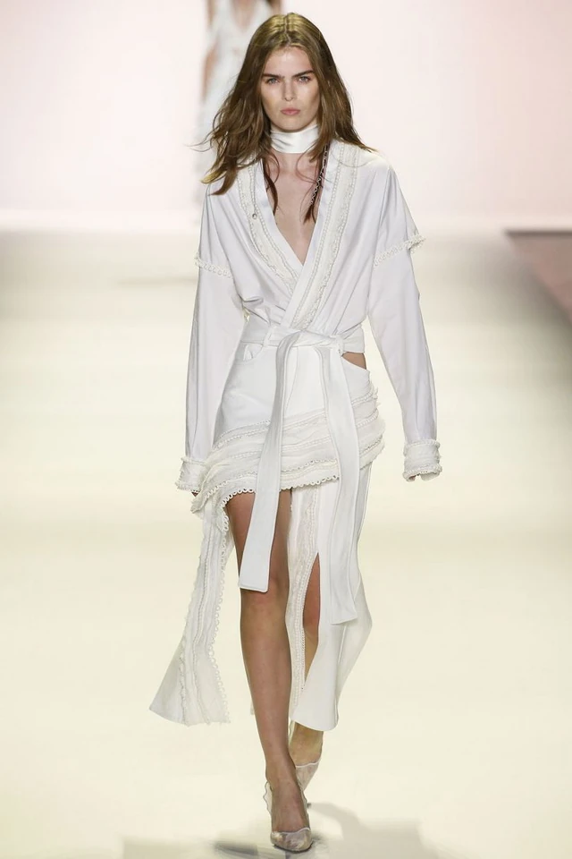 A derékon hanyagul megkötött övvel akár egy elegáns ruhát is helyettesíthet, mint ahogyan Ryan Roche vagy Jonathan Simkhai kifutóján láthattuk. A sportosabb vonulatot Alexander Wang, és a Band of Outsiders képviseli, ők frappánsan beépítették a köntöst az athleisure stílus elemei közé. Ehhez a megoldáshoz azért picit bevállalósabbnak kell lenni, de ha jól kombinálod a szetted összetevőit Te lehetsz a legvagányabb csaj a környéken.