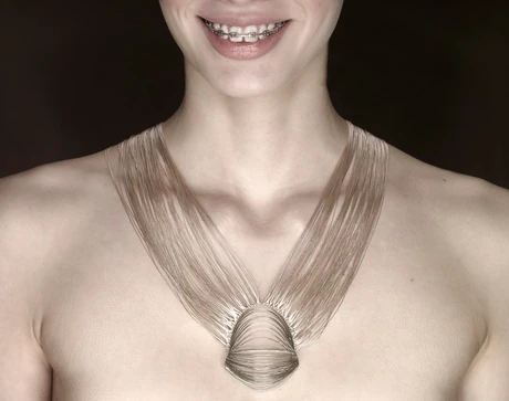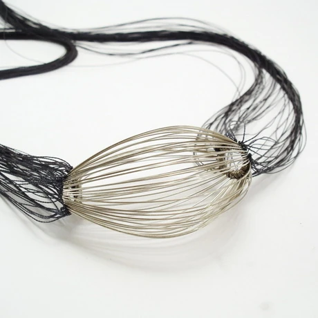 A nyakláncok légies szerkezete könnyű, mint egy fuvallat, a levegő legkisebb rezzenésére felelnek. Ez a finom kapcsolat a környezettel, szolid eleganciával, és kiegyensúlyozott, tiszta formákkal párosul. A hajszálvékony alpakka huzalból, cérnából, és színezüstből készült kiegészítők finomságuk ellenére egy viselet legizgalmasabb színfoltjai lehetnek. Ékszerrel nehéz mellélőni, kiváltképp, ha Juhos Janka mesés nyakláncairól van szó. A kecses darabokat most megtekintheted és meg is vásárolhatod a Salon de Boheme-ben, április 6-tól.
