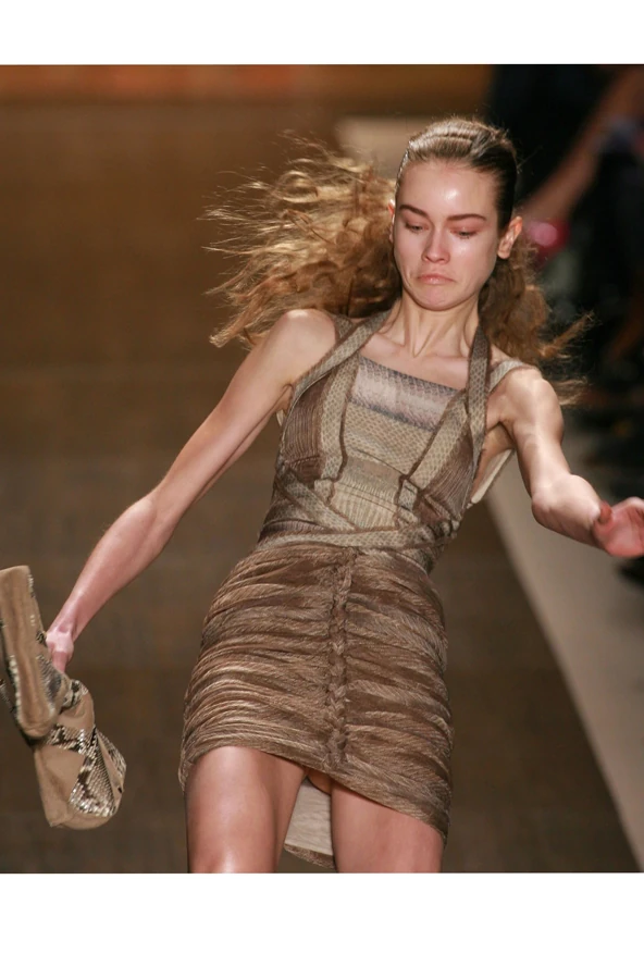 5. A Philosophy by Natalie Ratabes bemutatója valósággal el volt átkozva idén. A kifutón még rendben mentek a dolgok, de utána kezdődtek a bajok. Először is a liftbe ragadtak többek között a Lucky, a Teen Vogue, a francia és az amerikai Vanity Fair és a Vogue divatszerkesztői, köztük például Suzy Menkes is. A várakozás perceit azonban nem szakmai eszemcserére használták fel, hanem inkább sikítoztak. Végül egy létra segítségével másztak ki a lift fogságából, és a divatos szakembereknek még azt is meg kellett élniük, hogy le kellett venni a tűsarkú cipőiket a mászáshoz.
