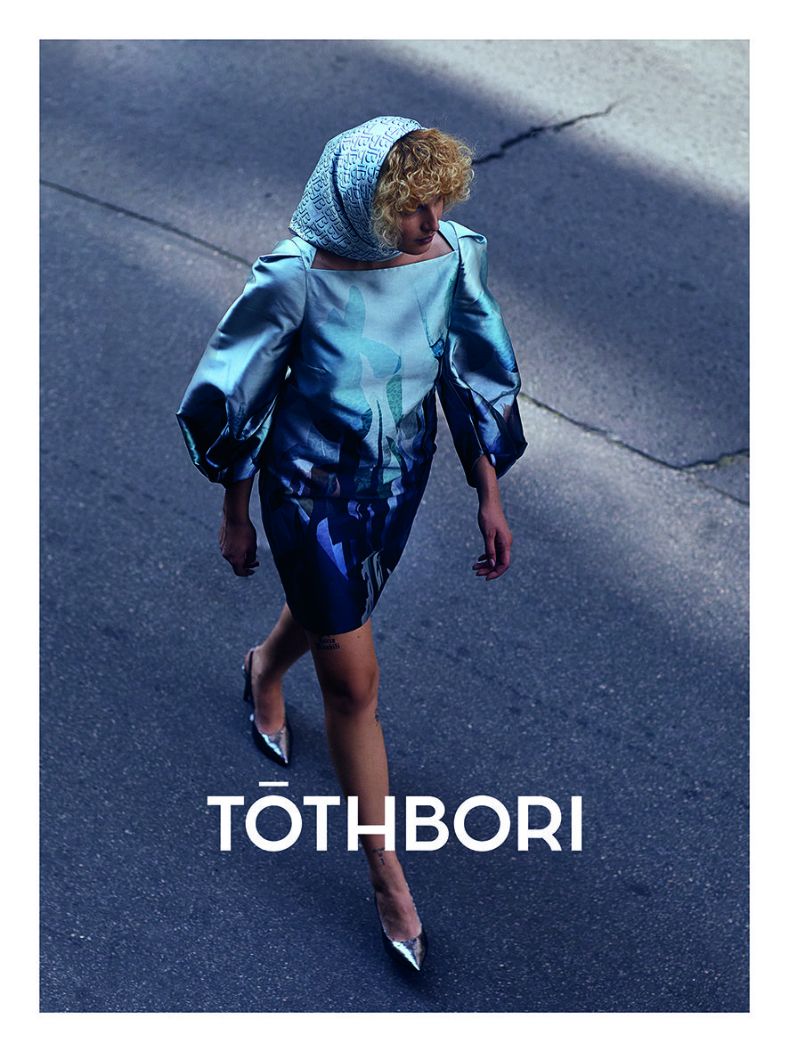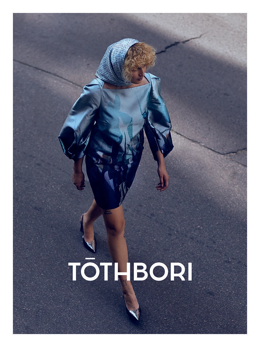 „Azzal hogy az utcán fotóztunk, azt is szeretnénk üzenni, hogy a nő, aki a mi ideálunk, nemcsak a négy fal között él, hanem aktív. Közben szép akar lenni, csinos, könnyed, lezser, ezért szereti a TOTHBORI-féle ruhatárat, az általunk használt anyagokat, formai elemeket, amik mindezt hordozzák. Sok a plisszé és a matt-fényes társítás – ez mai módon, de idézi azt az inspirációt, amit a századforduló, a szecesszió ad a kollekciónak. A modell arca szintén modern arc, mégis eszünkbe juttatja a korabeli a szépségideált is. A ruhákban is finom harmóniába kerül a vagányság és a mindenek feletti nőiesség – kortalanul hirdetik a szépséget és az eleganciát”- mondja Tóth Bori.