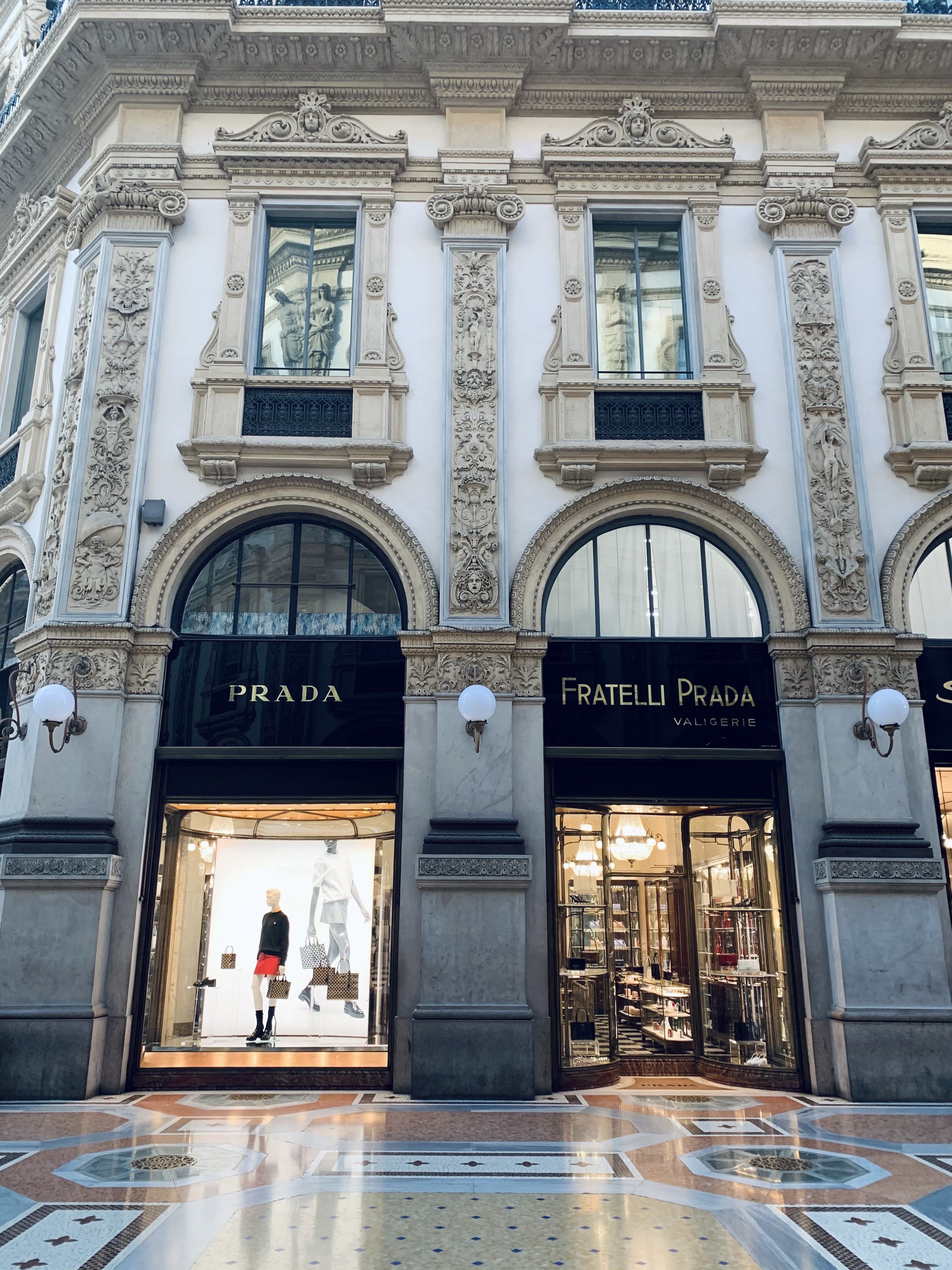 “Akad, aki közelebb hajolva az árakat böngészi, vannak, akik hangosan kommentálják a látványt, ám azt a kisebb, jobb felé eső bejáratot nem nagyon veszik észre.” Tibor Michaels: Prada - Az Ördög és a Szentetvíz című könyvének első bekezdéséből idéztem. Azt a jobbra eső ajtót és a fölötte lévő feliratot tényleg nem sokan veszik észre vagy ha igen, akkor nem biztos hogy tudják, mit kell nézni. Az az eredeti, legelső Prada bejárat a Galleria Vittorio Emanuele II üzletbe, amely a sok évvel ezelőtt, először megnyitott Prada üzlet emlékét őrzi. Divattörténelem a szemeid előtt.