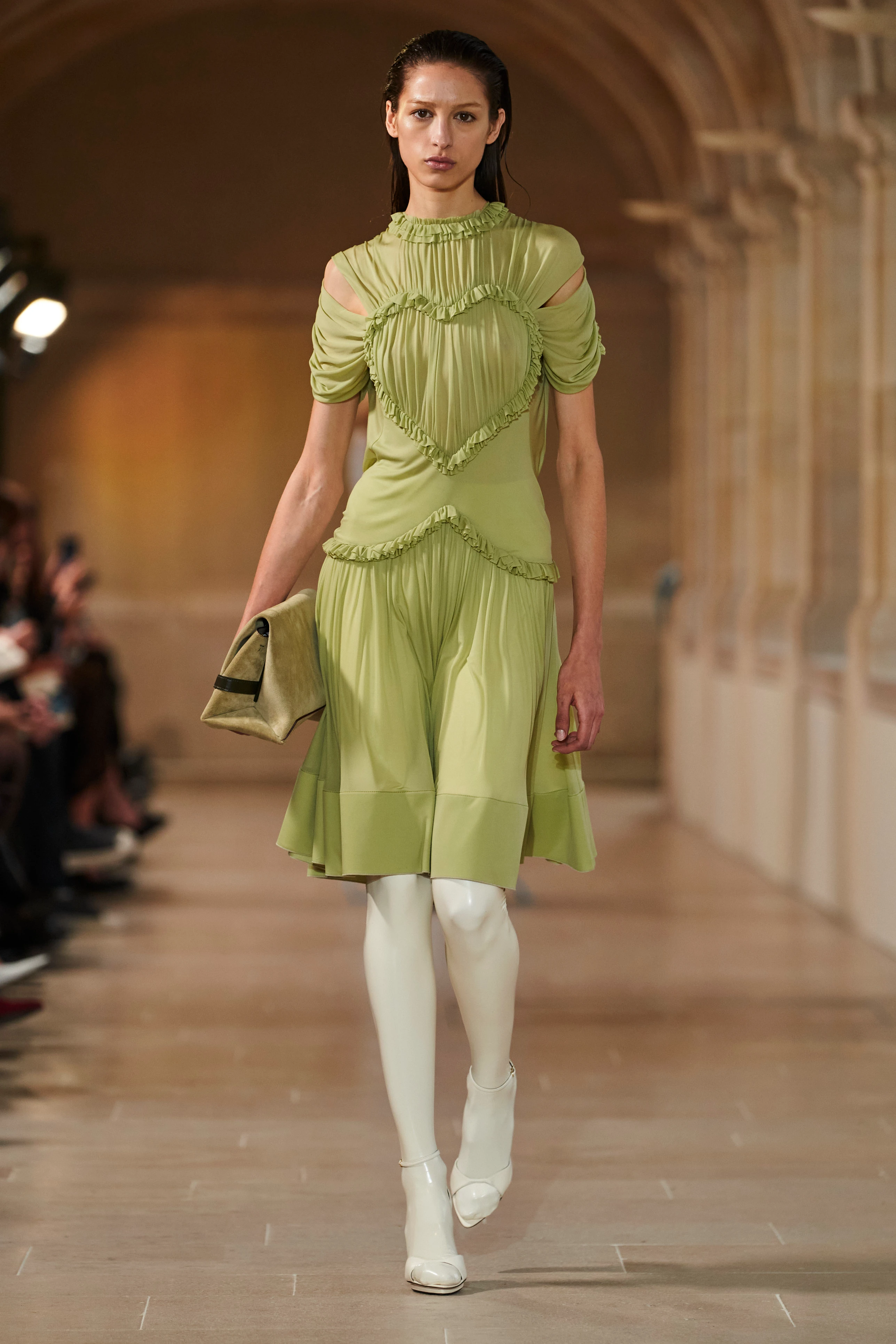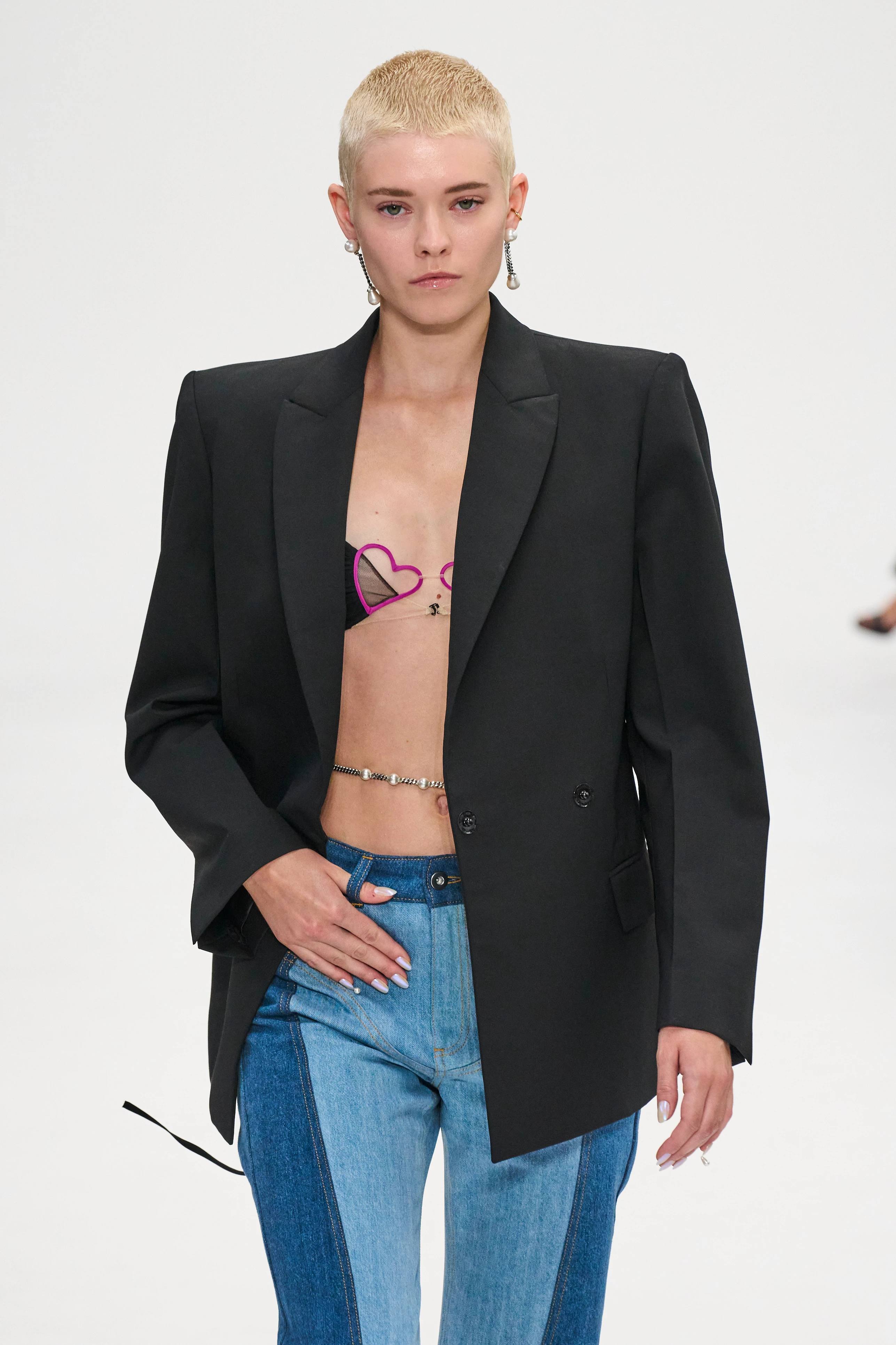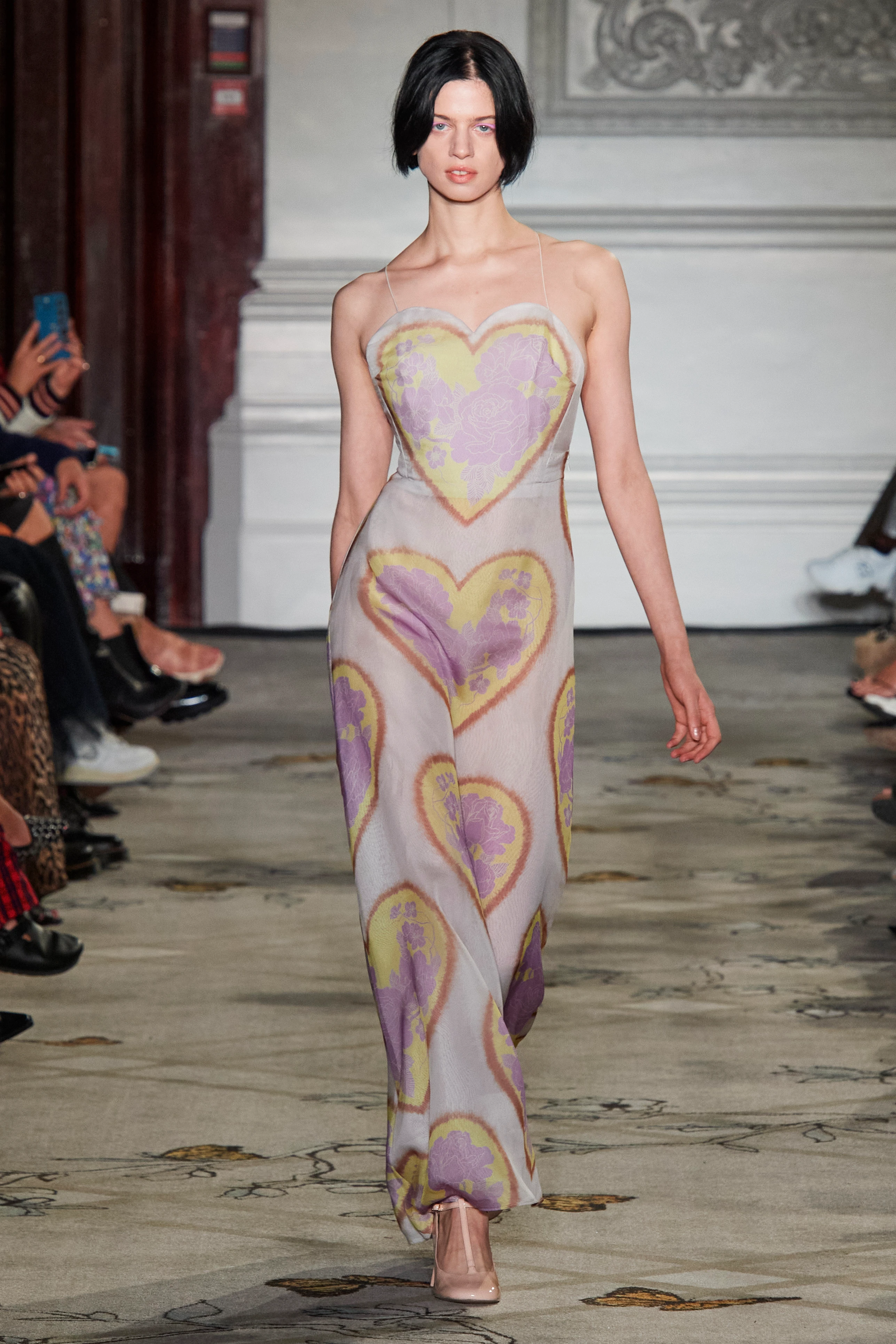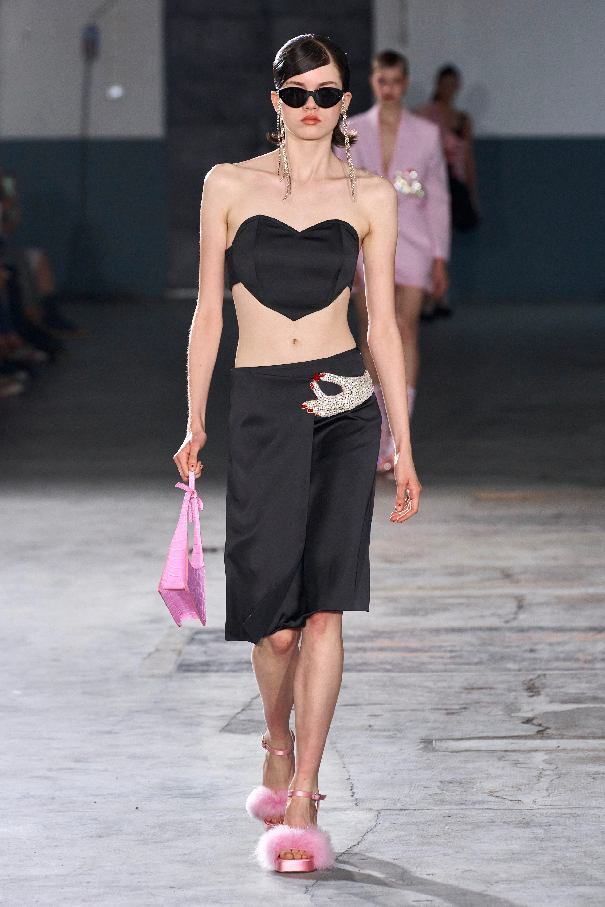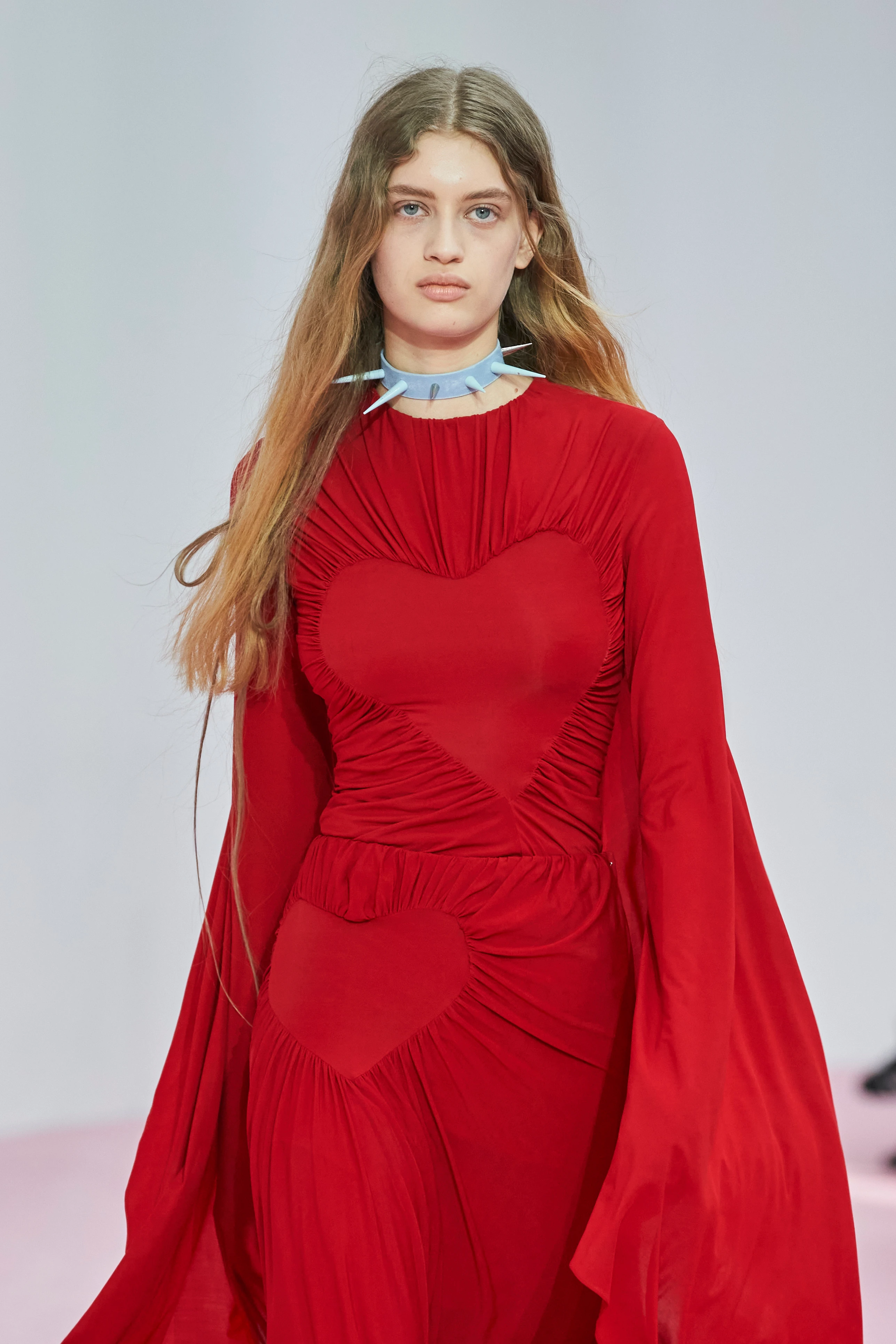 A London Fashion Week kedvence, Nensi Dojaka a márka tipikusan nőies és minimalista vonalait bájos, szimmetrikus szivecskékkel hangsúlyozta több ruhadarabon is. A rágógumi rózsaszín, fekete és piros színekben pompázó szívecskék határozottan az Y2K kedvelőinek szólnak.