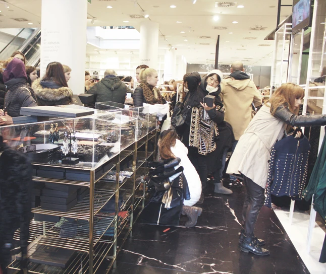 A H&M üzletében apokaliptikus állapotok uralkodtak, az extázis a tetőfokára hágott az ott dolgozók körében is, tátott szájjal bámulták, ahogy egymást fellökve, ész nélkül kapkod a tömeg. A vásárlók izgatottsági állapota valahol a szívroham és az agyvérzés környékén állhatott, borultak a bábuk és a ruhaállványok, egymást lökték fel az emberek. Egy fiú konkrétan elvett, vagyis inkább kitépett két pólót egy lány kezéből, és ez csak az egyik hihetetlen jelenet volt, aminek a szemtanúi voltunk.