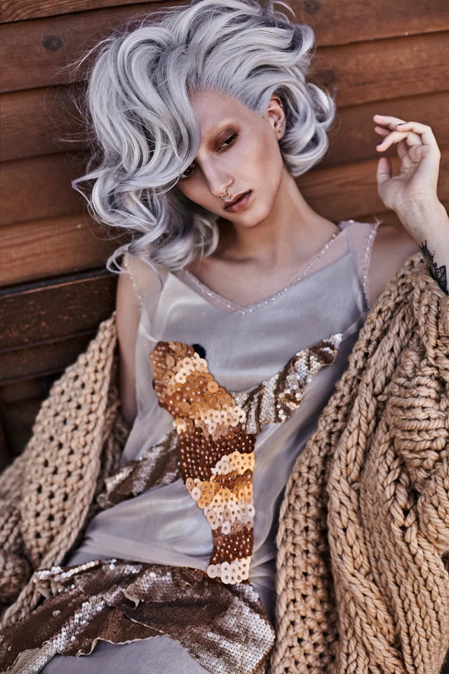 Keverjük bátran a különböző textúrákat! A kötött anyag melegsége napközben is viselhetővé teszi a flitteres selyemruhát.