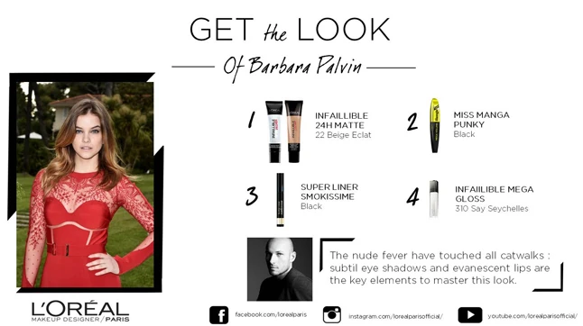 Természetesen erre az alkalomra is a L´Oréal sminkesei készítették fel Barbit, aki most egy kifejezetten natúr, természetes hatású sminket kapott, ami remekül passzol az egyéniségéhez. A L´Oréal Paris jóvoltából most is ellesheted hogyan készült ez a hétköznapokon is bátran bevethető visszafogott make-up. Nem kell hozzá más, csak már az előző megjelenésnél is használt L'Oréal Infaillible 24H Matte hatású alapozó, a L´Oréal Super Liner Smokissime tus, a nagy, dús hatású szempillákhoz pedig a L'Oréal Miss Manga Punky szempillaspirálja. Ehhez már csak egy színtelen szájfényre van szükség a tökéletes hatás eléréséhez.
