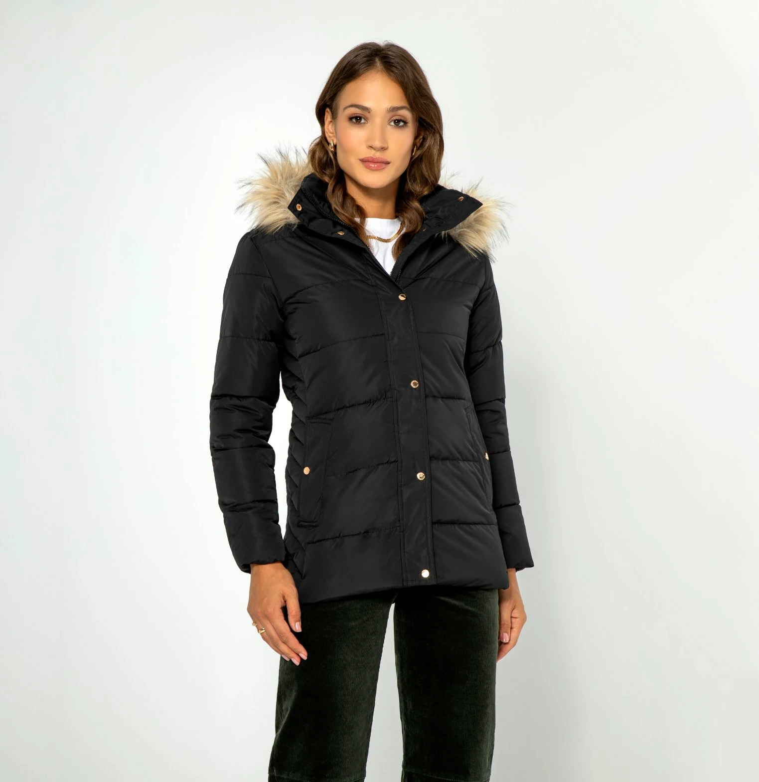 Ha egy tökéletes téli kabátot keresel, a Wittchen monogramos steppelt kabátja nem okoz csalódást. Elegáns varrása és a finom monogram kombinációja egyedi megjelenést biztosít. A kabát kényelmes és praktikus is: levehető szőrmés kapucnijával, kényelmes zsebeivel és aranyszínű részleteivel minden alkalommal magabiztosan léphetsz az utcára.
