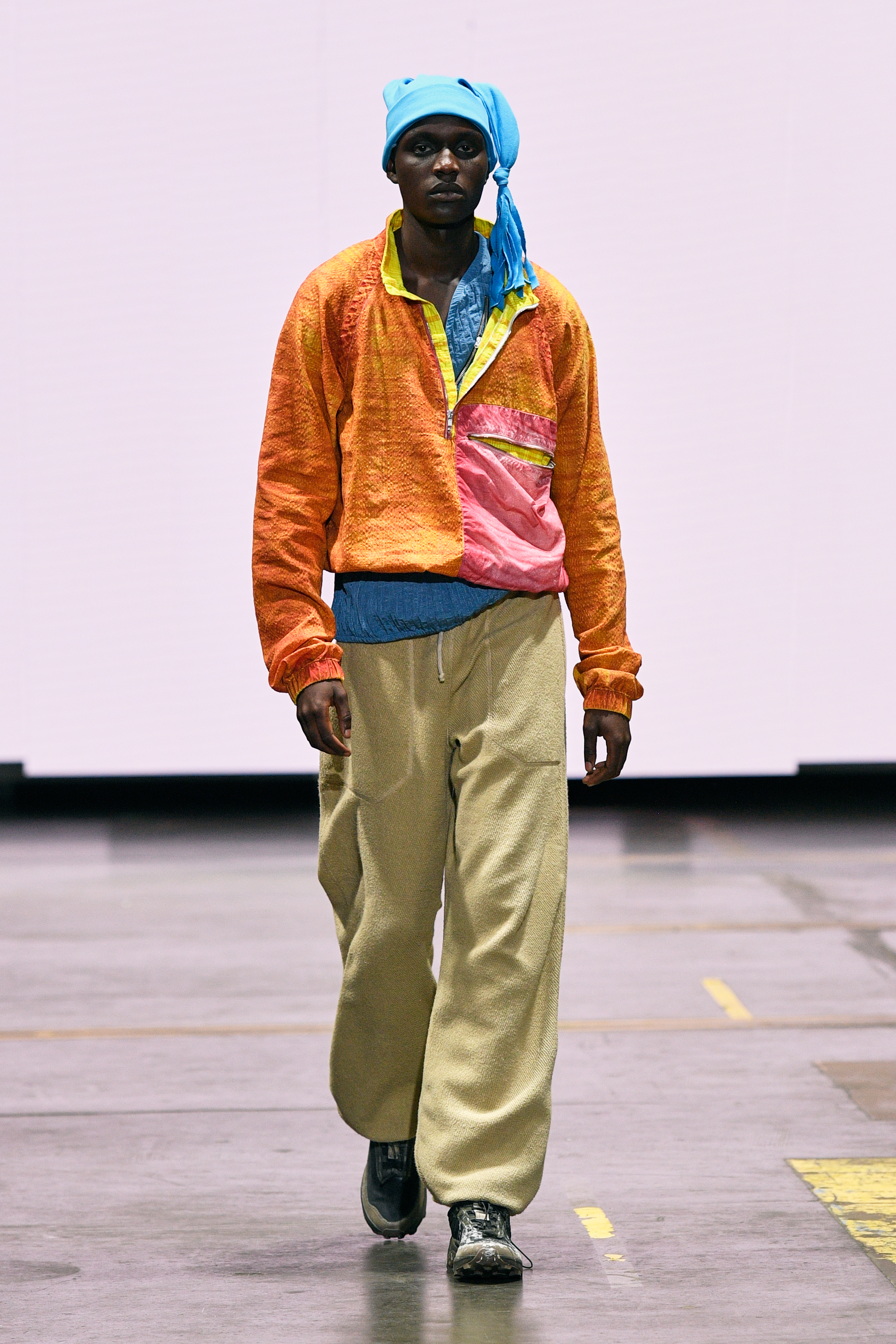 Ezeket a finom árnyalatokat olyan sportos ruhadarabokra alkalmazták, mint a cipzáras kabátok, nejlonnadrágok, rövidnadrágok és mellények. A mellények némelyikének rövid cipzárja követte a lekerekített nyakvonal ívét. A váratlan és finom részletek - köztük a Ranra által "biztonsági őr cipőnek" nevezett cipők - az ismerős darabokat különlegessé tették, Ez a a márka küldetése: hogy azonnal jól érezd magad a darabjaikban. Bár férfiak mutatták be a darabokat, tulajdonképpen bármelyik darabot viselhetne nő is, annyira univerzális, uniszex holmik.