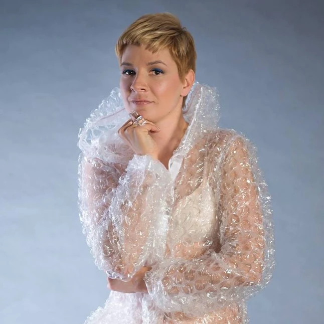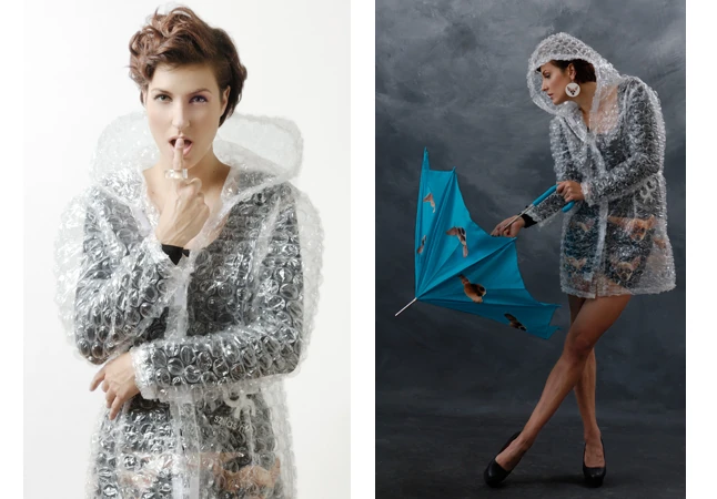 Eddig is jellemző volt rád a különleges alapanyagok, a bubis betétek használata, főként táskák terén. Hogyan jött az ötlet, hogy egy teljes ruhadarabot ebből készíts el?
