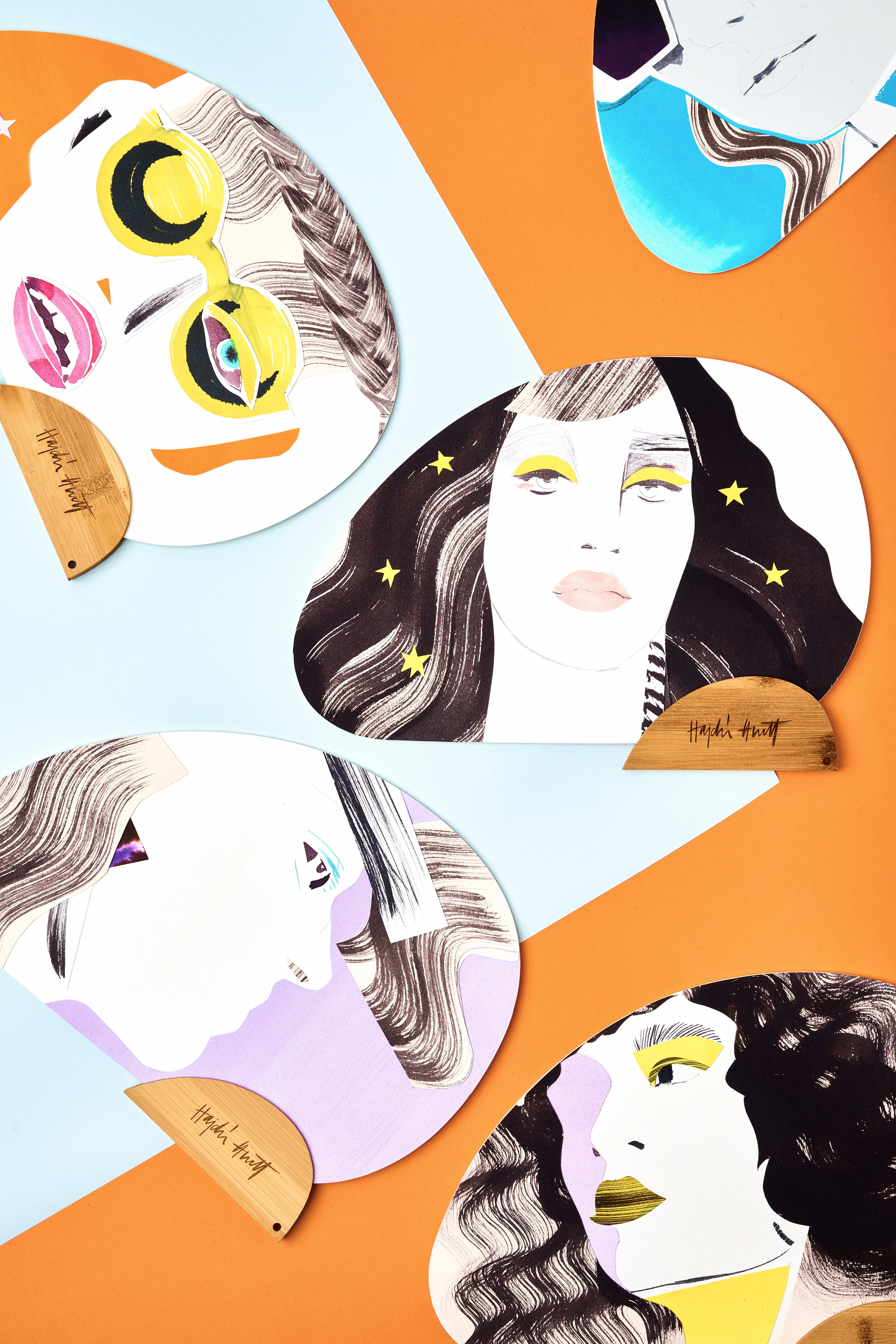 A kollaboráció során tíz egyedi, számozott legyező született meg. A 10 darab legyező mintája mind különböző, extravagáns női karaktert ábrázol. A képzelt karakterek egymástól eltérő egyéniségek, mégis összeköti őket egy igazán átütő attitűd. Itt az érzékiség dominál, ott a humor, néhol a lazaság másutt a semmivel össze nem keverhető vágy érint meg. A kollekció szervezőelve a kollázs technika és a szürrealitásba hajló absztrakció. A portrék kézzel megfestett arc-elemekből illetve hangsúlyos hajra utaló ecsetvonásokból épülnek fel. A darabokon jól megfigyelhető egyfajta átalakulás a realista ábrázolásmódtól a síkokra és alapelemekre bontott geometrikus megfogalmazásig. Minden díva saját keresztnevet kapott, mint például: Adaora, Adela, Aisa és megszemélyesítve tud beköltözni valaki otthonába a választható bambusz vagy fém tartókkal együtt.