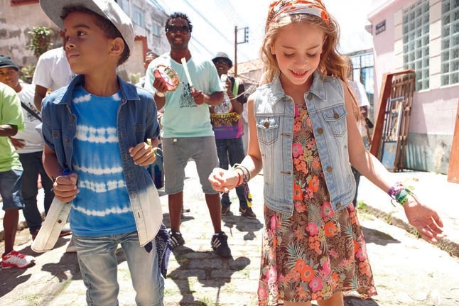 Az esőerdő zabolátlan zöldjei lepik el a kisfiú kollekció farmerjeit és rövidnadrágjait egy kis virág és lombkorona inspirálta terepmintával fűszerezve. A hétköznapi darabokat a tengerész stílus dobja fel, a csíkos pólóktól, a nyakkendőmintás effekteken át a rajzolt mintákig.