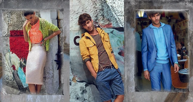 A férfi kollekcióban felsorakoznak a csíkos pólók és a pamut szövetnadrágok a rózsaszín és tengerkék különböző árnyalataiban, míg a fakókék öltönyök virágos inggel és mintás nyakkendővel a nyugodt eleganciát tükrözik. A különböző földszínek, mint a khaki, a rozsdabarna és a mustársárga feldobják a kapucnis dzsekiket, mintás pólókat és lezser zsebes nadrágokat.