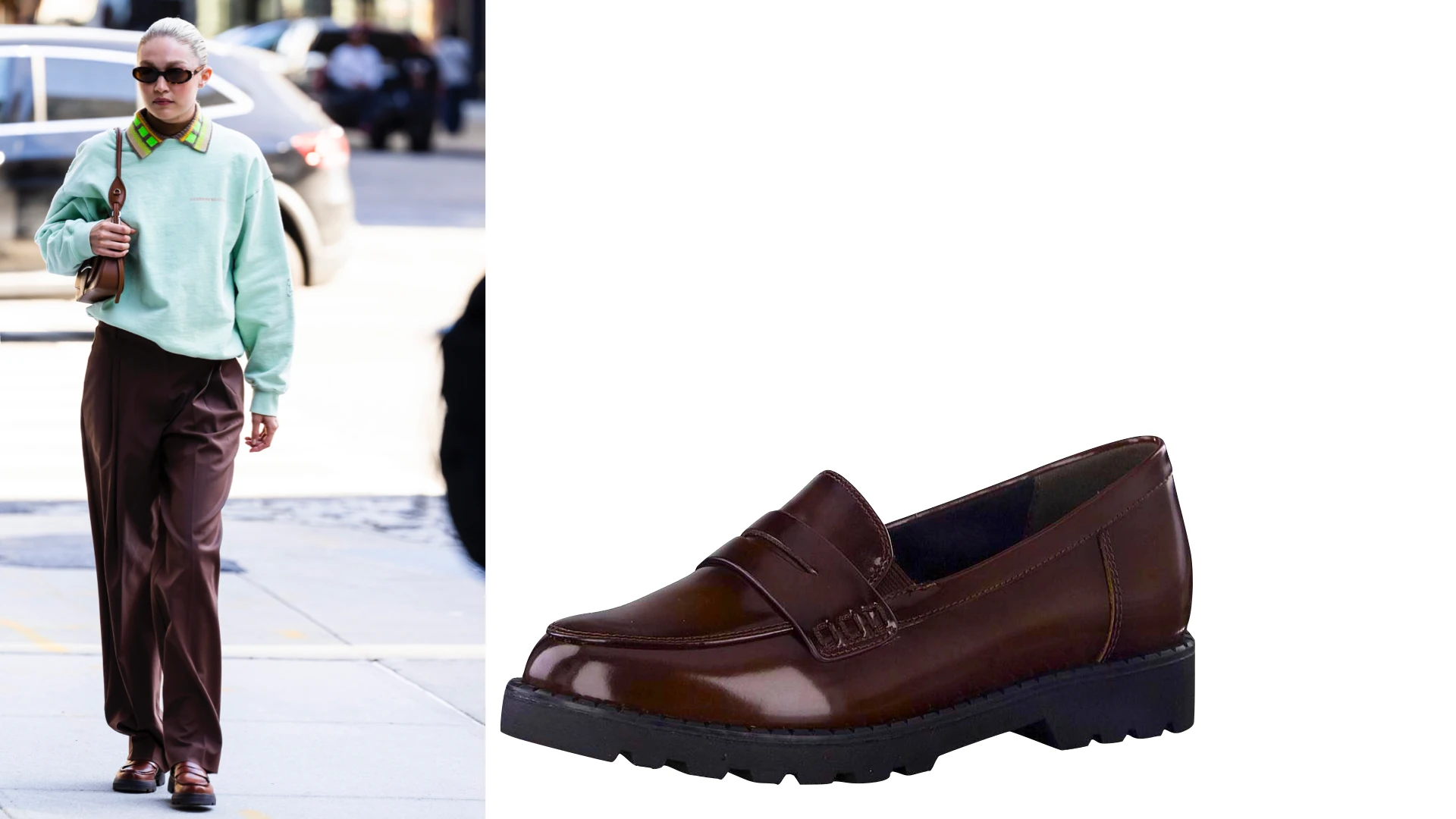 A klasszikus, bebújós cipő - amit a férfiak kelléktárából vettünk, de nem csak kölcsön -, robusztusabb verziója is nagyon kedvelt. Gigi Hadid fokozta a fiús stílust, és nem csak kiegészítőkben hozta ezt a vonalat. Hibátlan stílusérzéke most sem hagyta cserben.