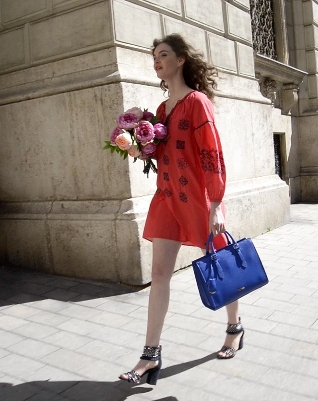 Rojtos ruha és ananászos táska ZARA 12 995 Ft, 9995 Ft