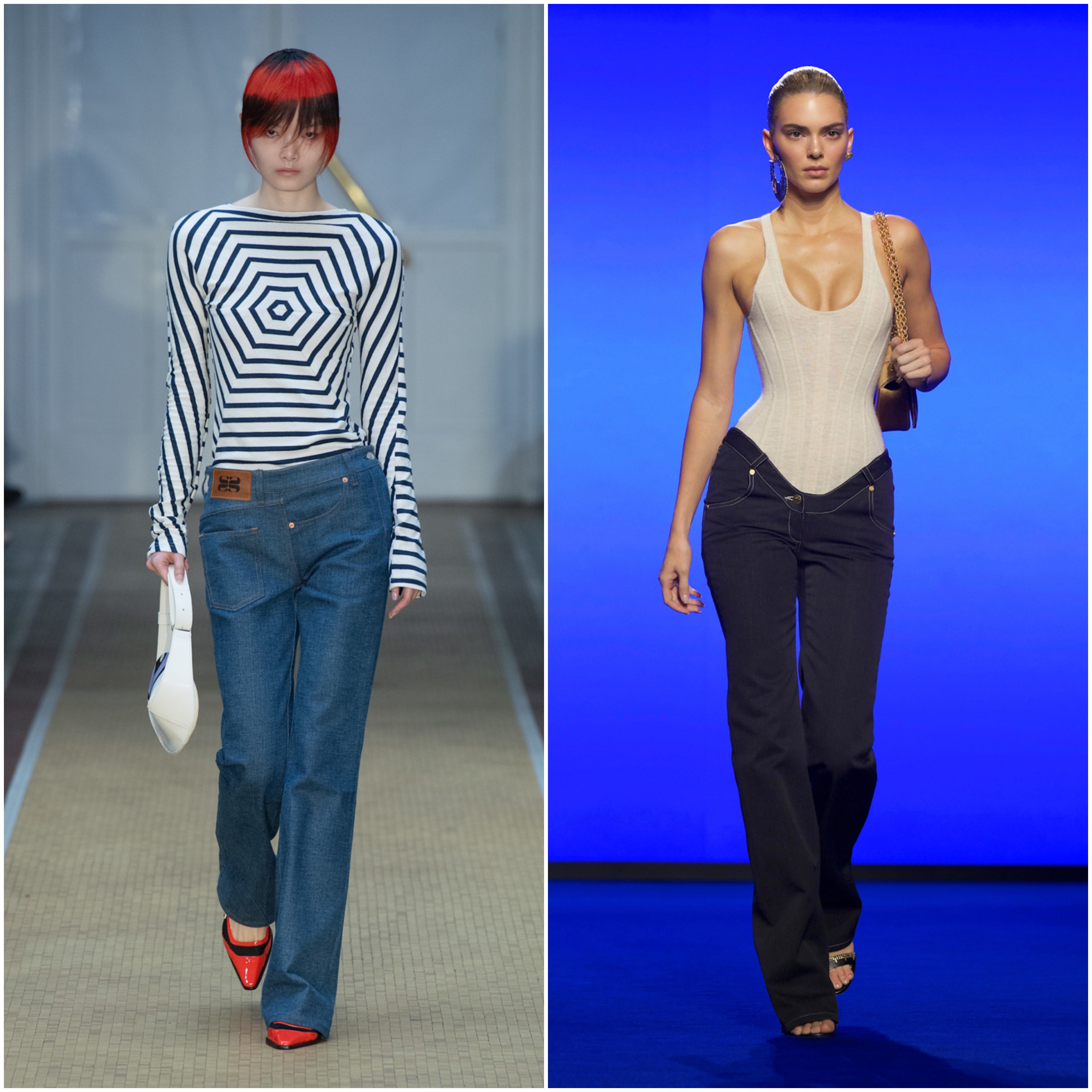 Természetesen előbb jelent meg az új farmer fazon a kifutótrendekben, majd hódította meg az utcai divatot is. A tervezők több stílusban is kísérleteztek vele. Földet söprő változatban, alacsony derékrésszel, extra derékrésszel, a közös pont viszont minden esetben egyet jelentett, most legyen dögös a hatás.