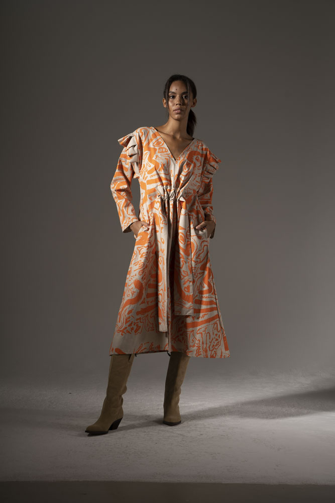 Egyre több ökotudatos, a környezetünkre, a természetre és az emberekre is odafigyelő magyar márka van, így te is könnyedén változtathatsz a gardróbod összetételén. A Printa tervezője, Majoros Zita a 2022-es őszi szezonra szabad kézzel rajzolt mintákkal, bátor színpalettával és lezser, kedv szerint alakítható sziluettekkel készült. A Printa mindezt a szokásos környezetbarát megoldásokkal valósította meg. A kollekció egyik legkiemelkedőbb darabja a bézs-narancssárga, hosszú fodros ruha, amely lenge, bohém stílusával az indián nyár és a kora ősz legkedveltebb darabja lesz.