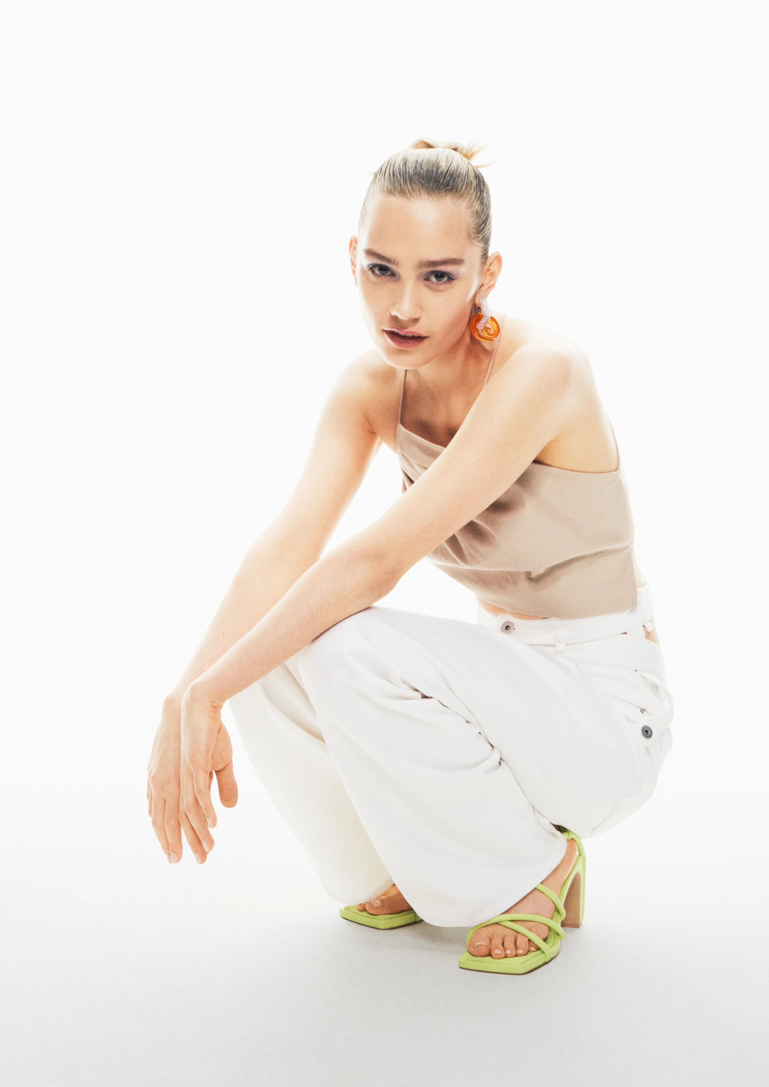 Az első kollekció, amely ennek a koncepciónak a része, a Science Story, vagyis tudományos történet nevet kapta, amely fejet hajt azok előtt a brilliáns elmék előtt, akik a jövő anyagai mögött állnak. Ezzel együtt pedig bemutatunk új anyagokat is, mint amilyen az EVO by Fulgar®, egy bio-alapú fonal, amelyet ricinusmagból vonnak ki, valamint a Desserto, ami egy növényi alapú, kaktusznövényből készült vegán bőrhelyettesítő anyag. A kollekció kulcsdarabjai a bőszárú hófehér farmer, levehető dupla derékövvel, a rövidre szabott krétafehér ing túlméretezett mellzsebbel, valamint az összehúzott aljú melegítőnadrág, a hozzá illő felsővel. A kollekció egyszerű és letisztult darabjaihoz erős kontrasztú kiegészítők készültek, melyek energikus és merész hatásúak: a szűk és erőteljes nyaklánc narancsszínű spirálokkal és strasszköves díszítéssel, a hozzáillő fülbevaló, a zöld magassarkú, pántos szandál és az újrahasznosított műanyagból készült kék napszemüveg, amely duplalencsés kerettel készült.