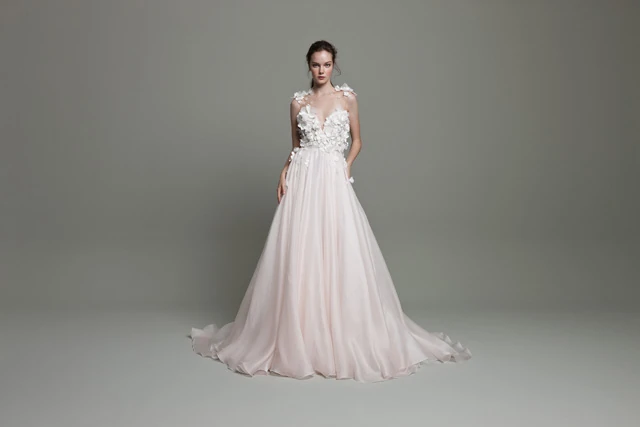 A SUNSET kollekcióban nagy hangsúlyt kapnak a légies muszlin anyagok, a könnyed selymek és a finom zsorzsettek. A kollekció színeiben megjelenik a homok halványsárga árnyalata, az égbolt rózsaszínből lilába hajló pírja és a napsugarak narancsos fénye. A laza és leheletkönnyű anyagokban a menyasszonyok szabadabban élhetik meg életük egyik legfontosabb napját, mint valaha.