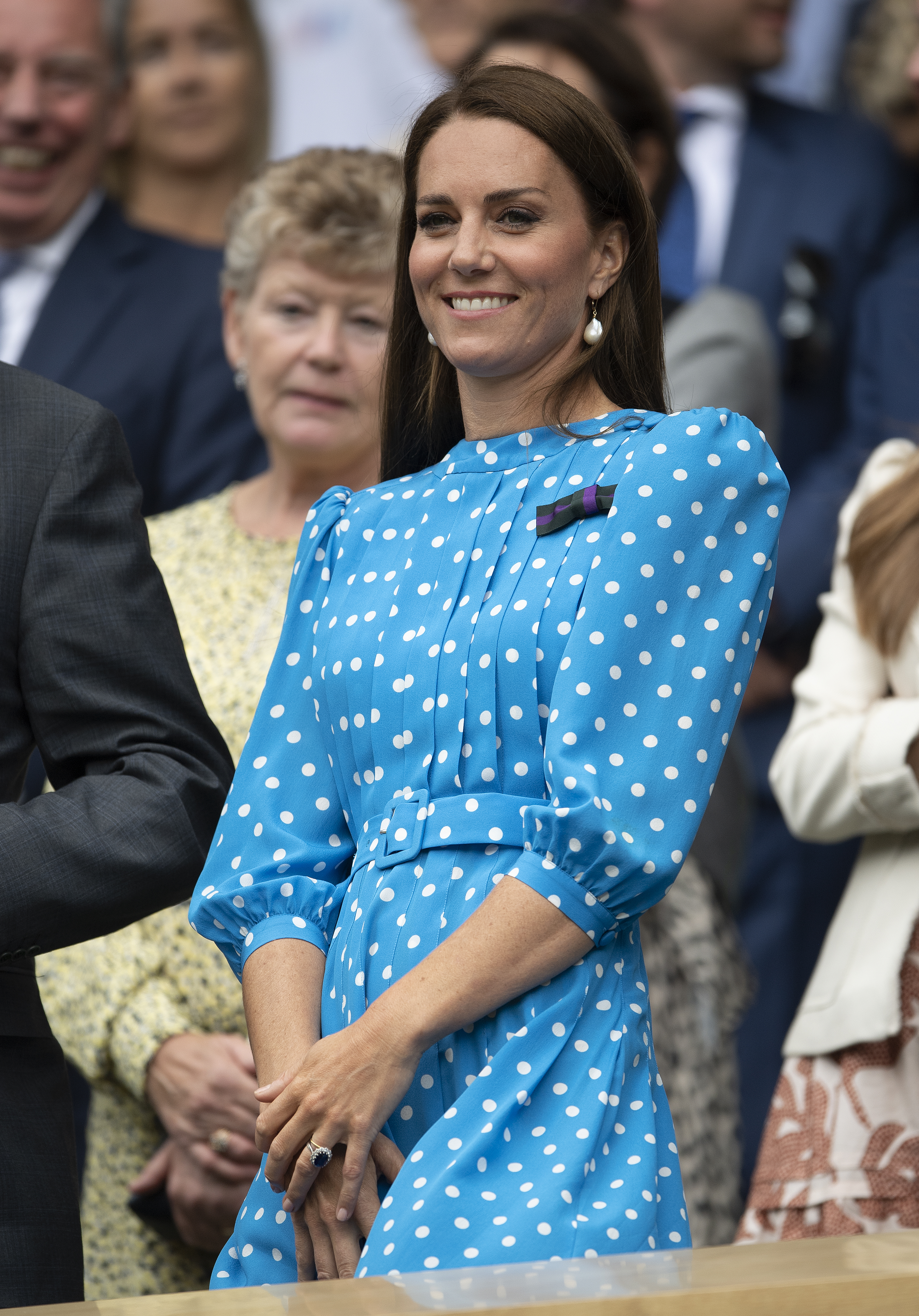 Ismét Wimbledon, csak 2021. A cambridge-i hercegnő most szoknya formájában öltötte magára a pöttyöket. Ha csak egy darab pompázik ebben a mintában, az is elég a sikerhez.