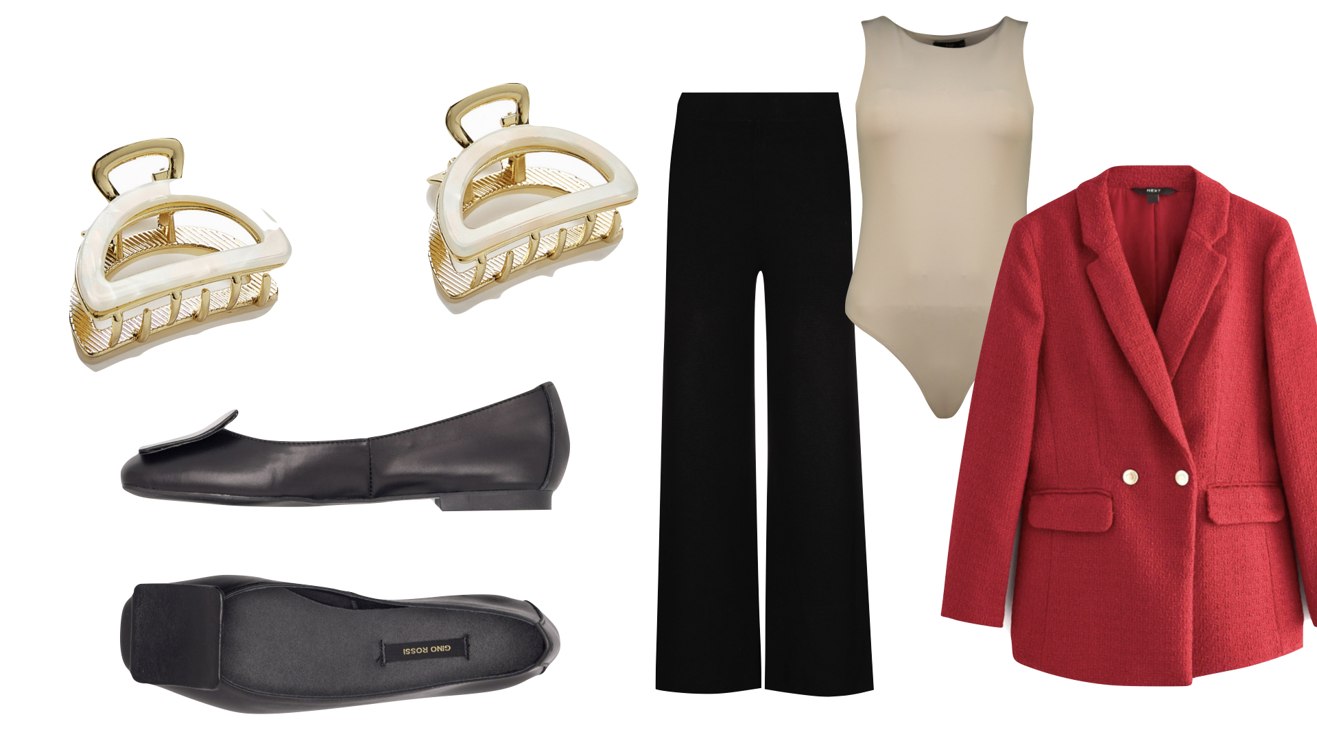 Az élénkpiros tweed blézer, strukturált vállakkal és arany gombokkal igazi klasszikus. Az együttes többi része csupa alapdarabból áll, ami valószínűleg a te szekrényedben is ott lapul már. És a magas sarkú is elmaradt, amit a visszatérő nagy kedvencre, a balerina cipőre váltott le Katalin hercegné.