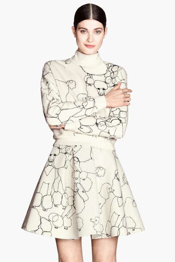 Nyilván, ha mindennap Minnie egérrel, vagy Hello Kittyvel díszített holmikba járnánk, kissé nevetségesnek tartanának. Azonban nem érdemes teljesen megkomolyodni sem, a divat legalább annyira szól a humorról és a vidámságról, mint az eleganciáról. Nagyon szerencsés esetben egyszerre engedheted szabadra a benned élő kislányt és lehetsz szupersikkes. Ez a H&M összeállítás szerintünk tökéletes példa erre. A pudlis, magasított nyakú pulcsi és a hozzá passzoló szoknya egyszerre cuki, de azért sikkes is. Jó, azért operába nem lehet elmenni benne.