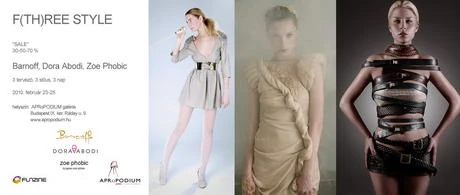 Február 23-ától 25-éig délután két órától 8 óráig a budapesti IX. kerület, Ráday utca 9-es szám alatt található Apropódium Galériában 30, 50, de akár 70 százalék kedvezménnyel vásárolhatsz magyar tervezők kreációiból! A F(Th)ree Style névre keresztelt akció keretében a GLAMOUR Women of the Year jelölt Abodi Dóra a GLAMOUR Women of the Year jelölt Abodi Dóra ruhái mellett Barnoff és zoe phobic kreációk közül válogathatsz!