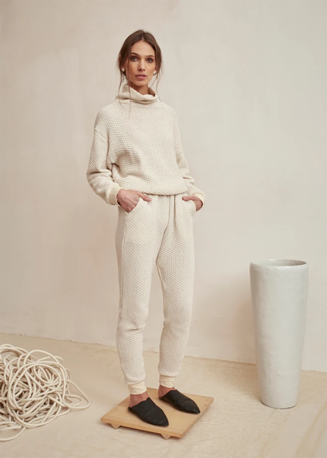 PRINTA újrahasznosított pamutfonalból készült kötött szett, pulóver 17360 Ft és nadrág 15 750 Ft
