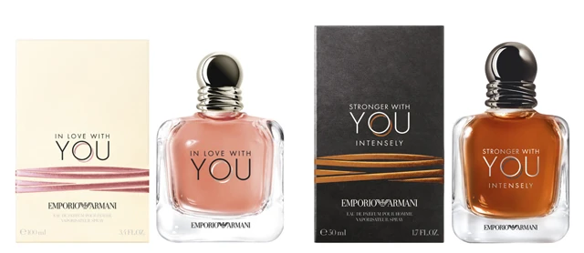 Nem véletlenül választottuk ezt az illatpárost, hiszen a kommunikációjában is az áll, hogy "együtt erősebbek vagyunk". Tökéletes választás a boldogító igen kimondásához. Üvegén is megjelenik a dupla gyűrű, aminek szimbóluma a kapcsolat összekötése. Az In Love With You a fekete cseresznye, sambac jázmin, borostyános rum kavalkádjától lesz érzéki, míg a Stronger With You magabiztosságát a levendula, tömjén, vanília és borostyánfás jegyek adják.