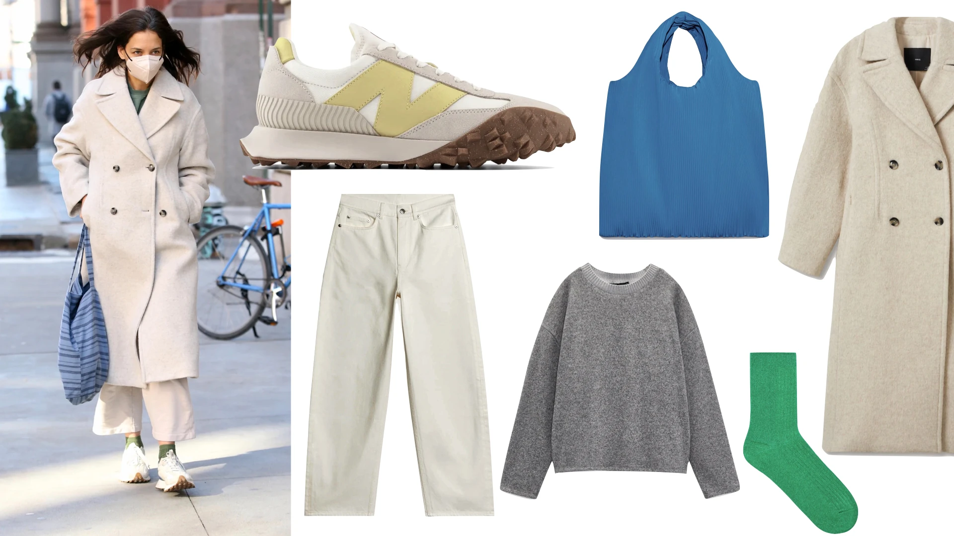Eközben Katie Holmes kabátja alatt bizonyára egy nagyon kényelmes szett lapul meg. Viszonylag gyakran látjuk kedvenc New Balance edzőcipőjében a színésznőt, és a praktikus, vászon bevásárlótáska is ad egy hangulatot a megjelenésnek.