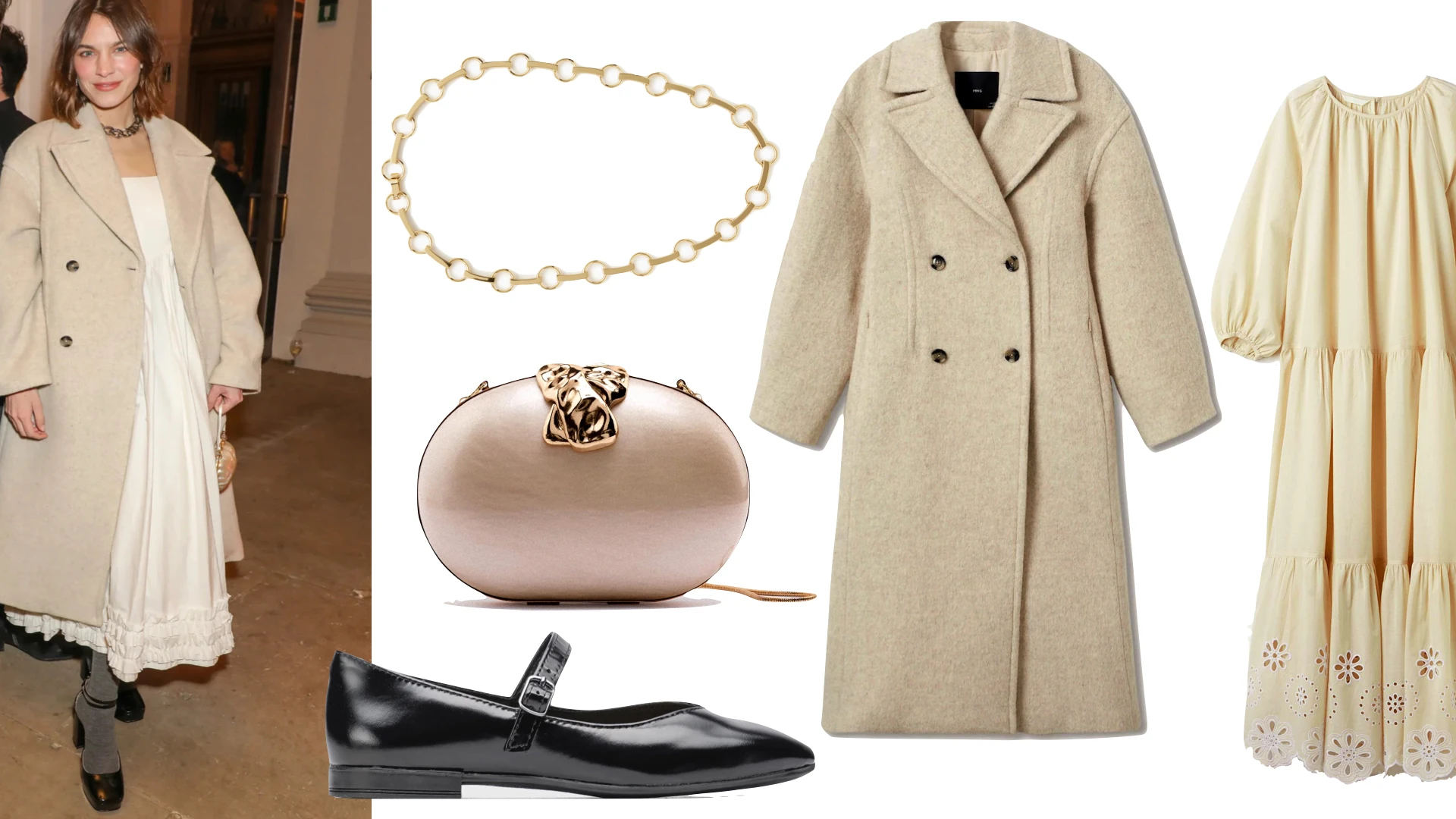 Alexa Chung bebizonyította, hogy a kabát éjjel-nappal is alkalmas, és romantikus ruhában jelent meg egy eseményen. A kislányos bájt a zokninak és a Mary Jane cipőnek köszönheti, ami méginkább ráerősített a romantikus stílusra.