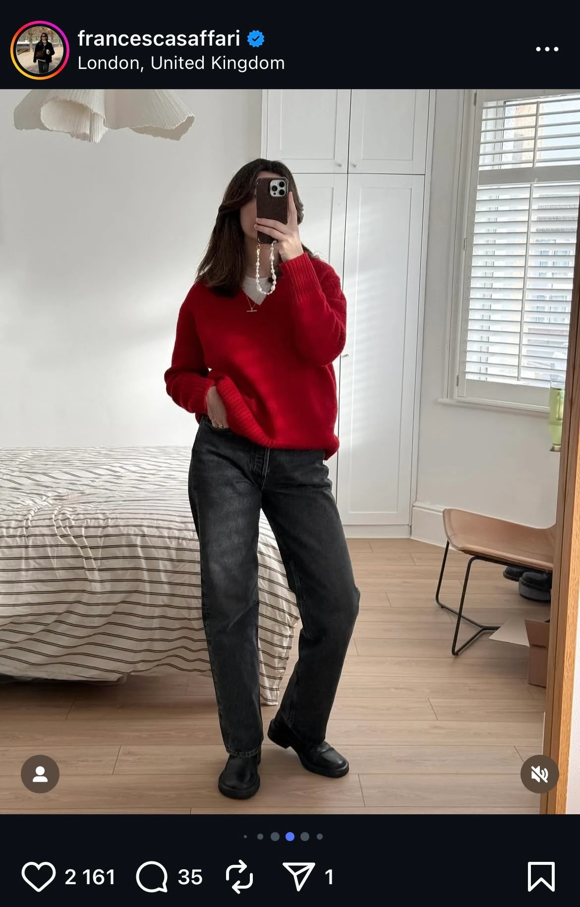 A piros pulóver és a maxiszoknya közös erővel bizonyítják, hogy a klasszikusok sosem mennek ki a divatból, és mindig a legjobb választást jelentik