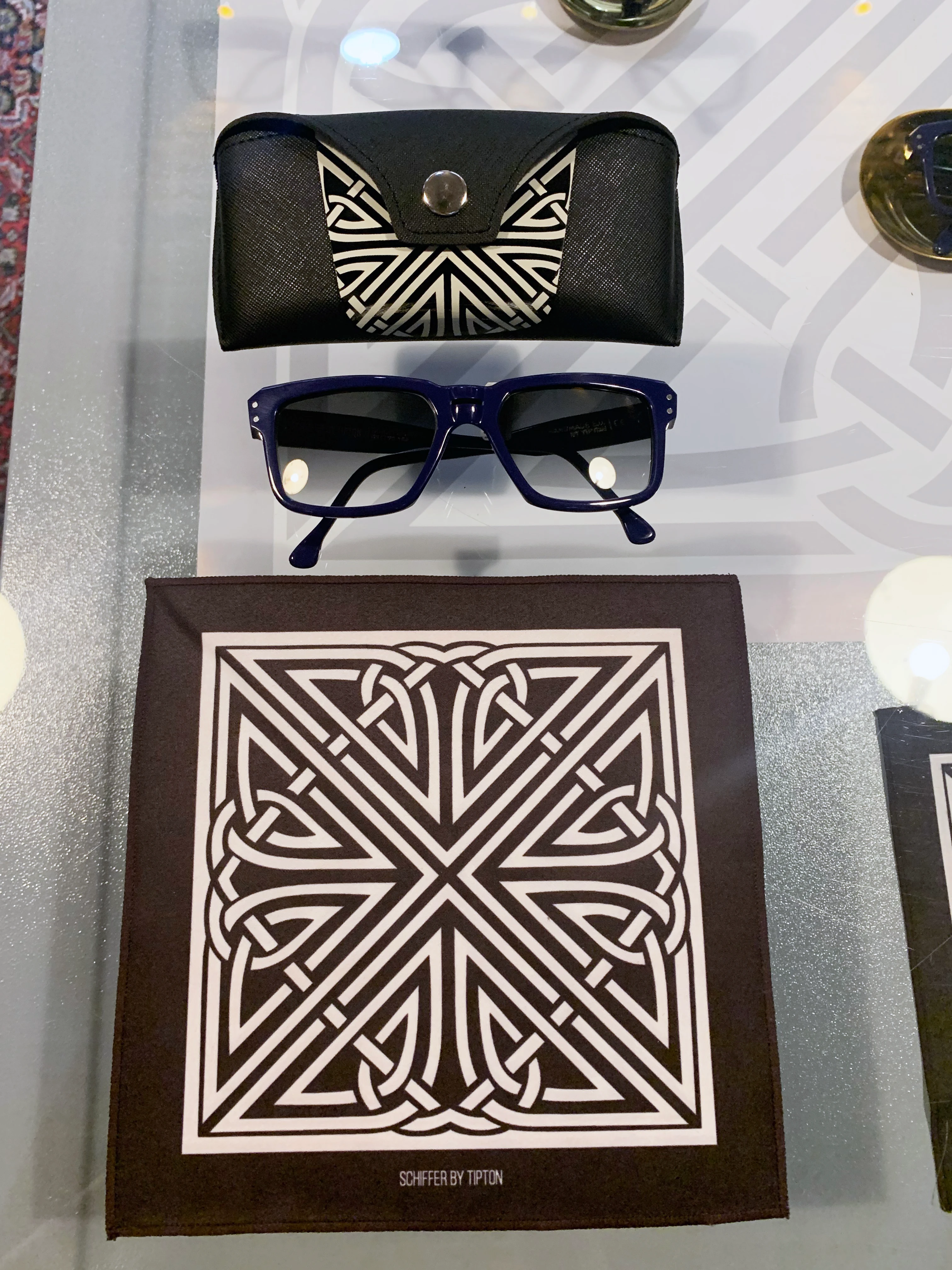 Az art deco stílus, ami a szemüvegtok és törlőkendő mintáján is látható Schiffer egyik nagy kedvence: “Nagyon szeretem az art decot, a tisztasáságát, az eleganciáját, a különlegességét. Ezt képviseli a törlőkendő is, ezért alkottuk meg a mintáját. A kendő amúgy díszzsebkendőként is szolgál.”