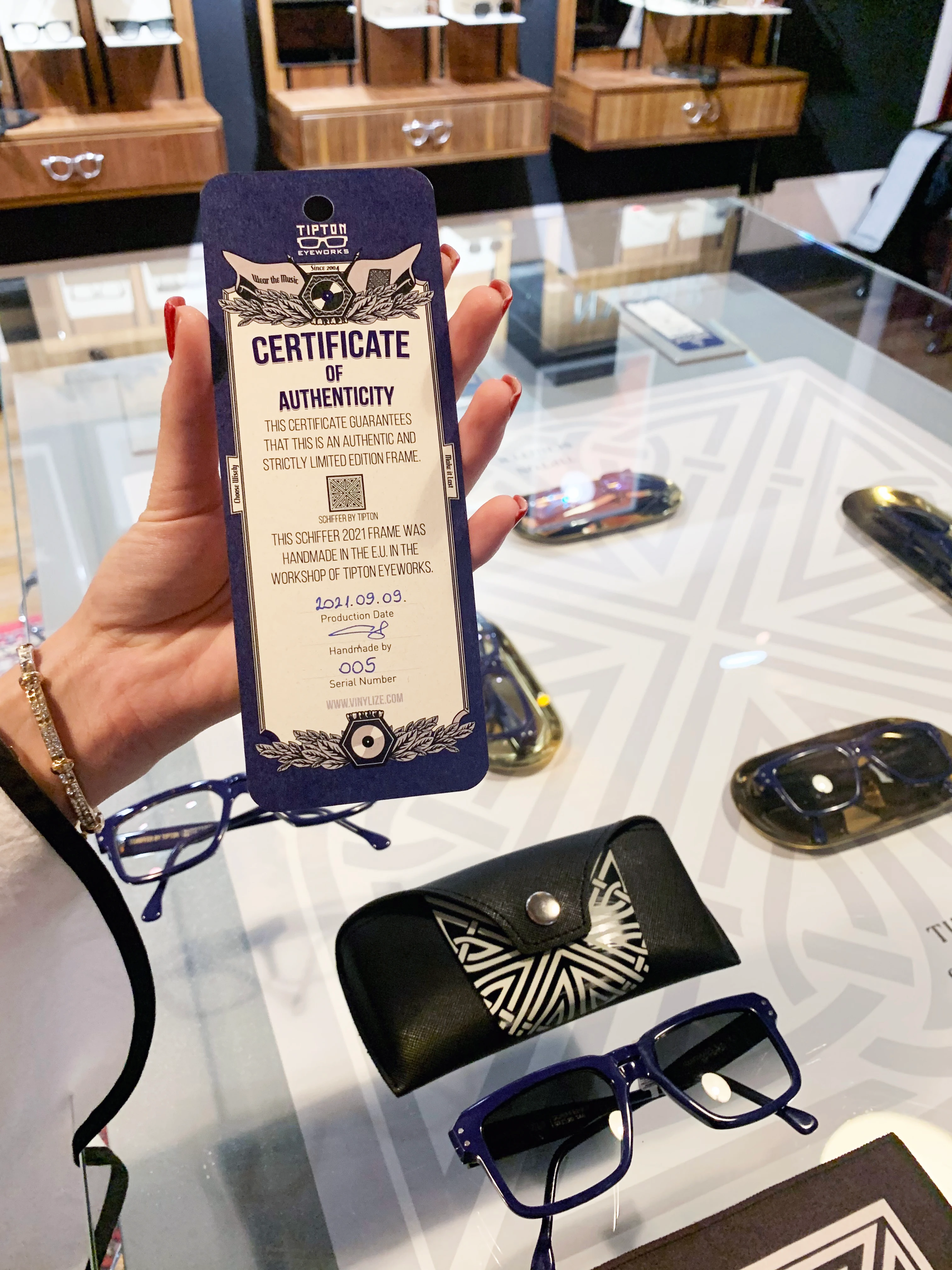 A készlet mindössze 60 darabból áll, minden darabhoz egy egyedi, art deco stílusban megalkotott törlőkendő és tok jár, valamint egy bizonyítvány, amelyen rajta van, hogy hányadik darab kerül a vásárló keze közé. A szemüvegek kézzel készültek, a számozásukat pedig szintén kézzel vésték szemüveg szárába. Alig látható, de annál többet ér az a pici szám, hiszen ebből is tudjuk, hogy egyedit viselünk.