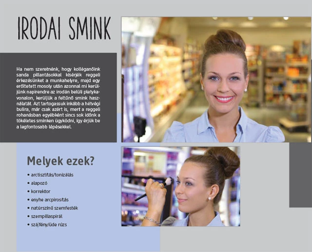Az, hogy egy szép smink az egész napunkat bearanyozza, talán nem képezi vita tárgyát. Nem túlzás az sem, hogy ettől sokkal magabiztosabbnak, vidámabbnak és csinosabbnak érezzük magunkat, ami persze nem csak a magánéletben, de az irodában sem hátrány.
