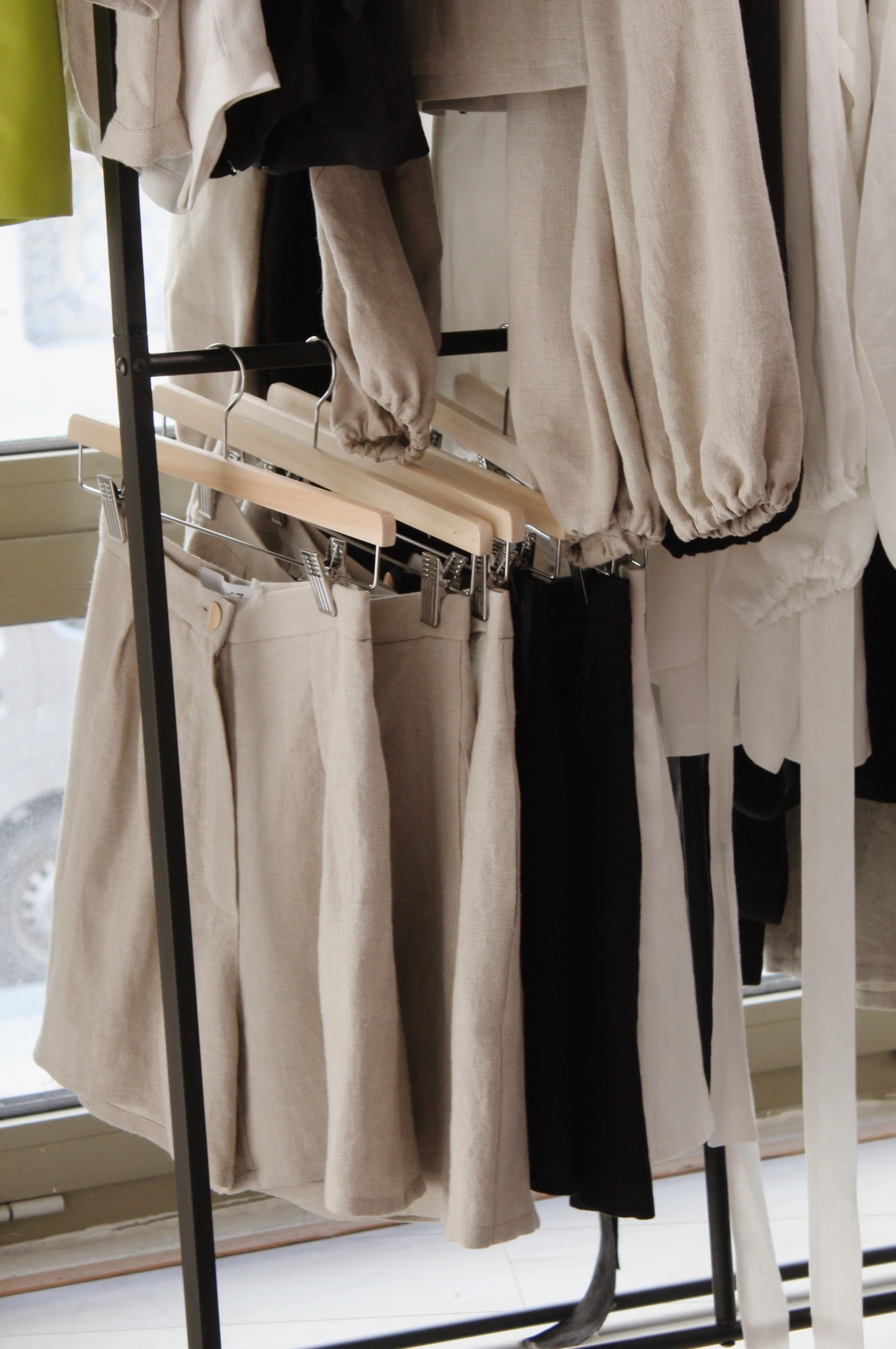 A len anyagot először beavatják. De mit is jelent ez? A 100%-ban természetes alapanyagú vagy ezeket az alapanyagokat tartalmazó textileket érdemes még a varrás előtt kimosni, vasalni, hiszen az első száradás után megy össze az anyag. Beavatáskor a kémiai anyagok is kioldódnak a textilből, így azok nem fognak már a bőrrel érintkezni. A beavatott textilből 2 budapesti varrodában készítik el a ruhákat.