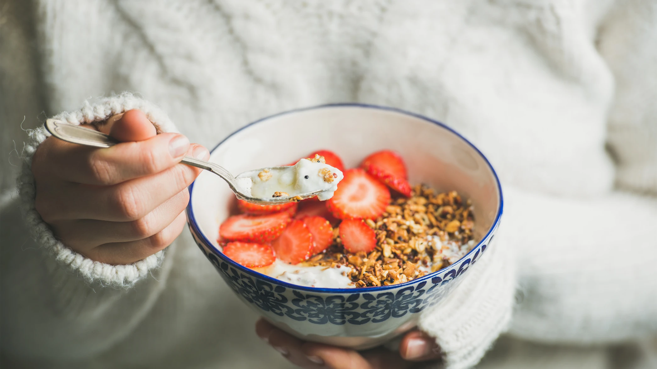 „A magas cukortartalmú ételek, mint például a péksütemények, a gabonapelyhek vagy az ízesített joghurtok fogyasztása nem ideális reggelire, mivel nagyon megemelik a vércukorszintet, és így nagyon gyorsan újra meg fogunk éhezni” - mondja Jenna Hope, táplálkozási szakértő. De akkor mégis milyen az ideális reggeli?