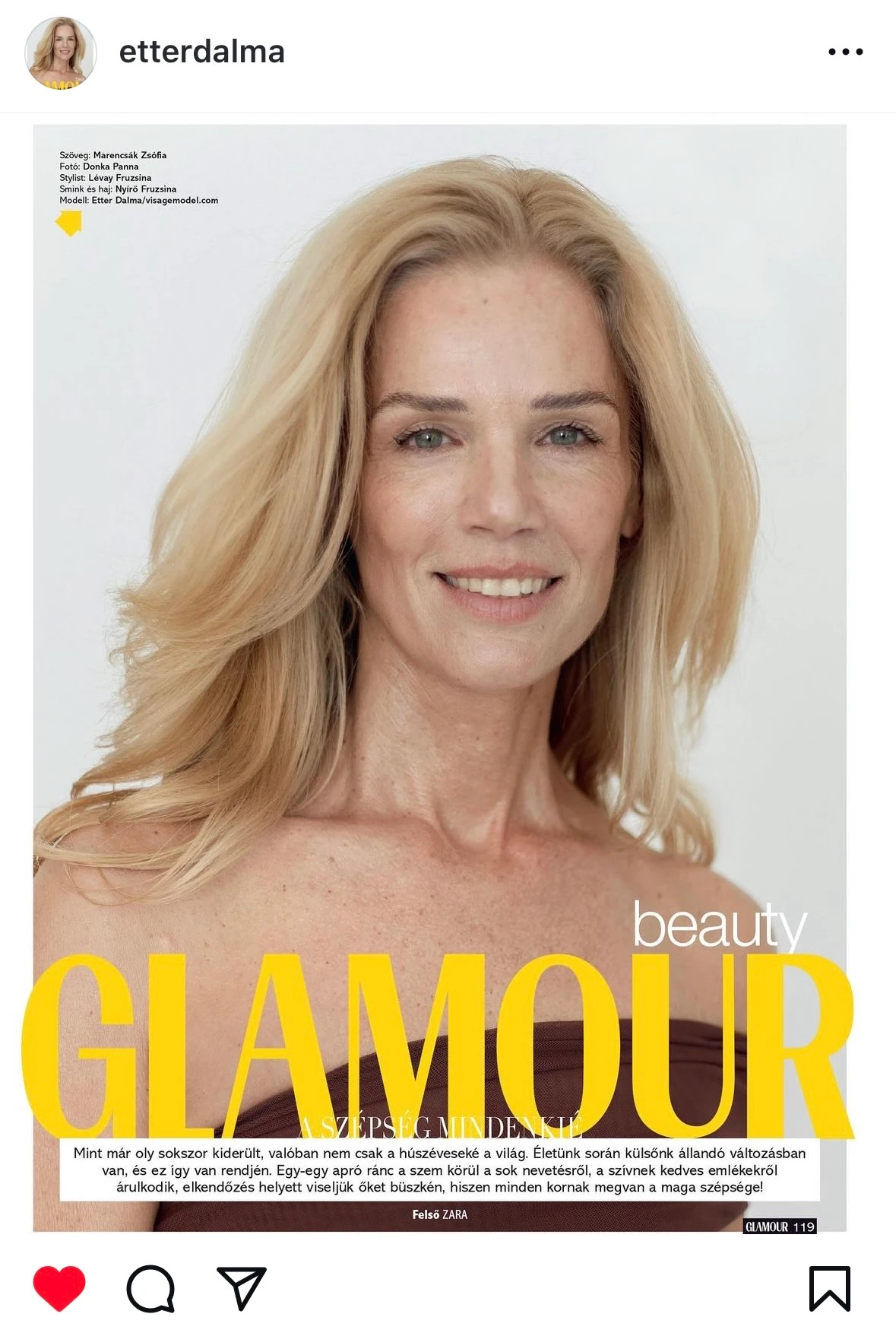 Etter Dalma a kilencvenes években élte modellkarrierjének csúcsát, ebben az évben azonban nagy visszatérőként áll a fotósok kamerái elé, és saját elmondása szerint nagyon élvezi, hogy a nőiességét ilyen módon visszanyerte. A modell most a GLAMOUR-nak árulta el, hogyan lehet magabiztosnak lenni nőként minden életkorban.