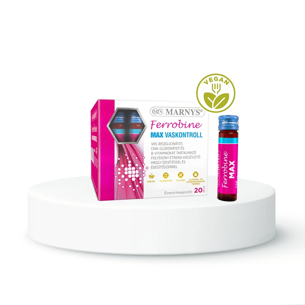 A vas a szervezet egészséges működéséhez létfontosságú nyomelem, azonban a szervezet nem képes annak előállítására, ezért azt a táplálékkal, szükség esetén étrend-kiegészítővel kell bejuttatni. Erre tökéletes a Marnys Ferrobine Max Vaskontroll. A vashiány sok embert érint, kialakulása mögött leggyakrabban az elégtelen vasbevitel, a csökkent felszívódás, vagy a fokozott vasvesztés állhat, ezért pótlása rendkívül fontos.