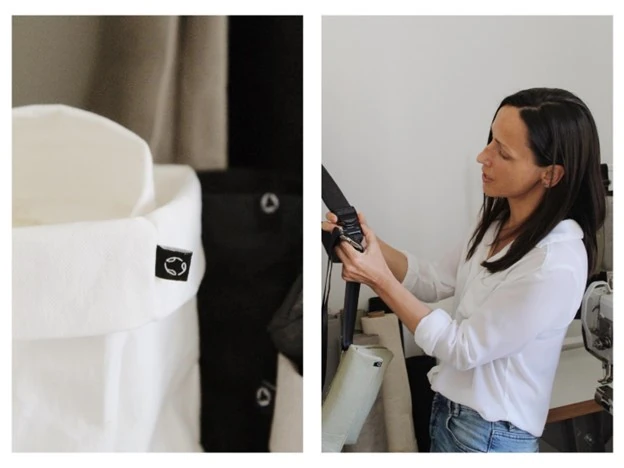 A Covid-járvány után Enikő új márkában gondolkodott, a vitorlavásznat és a katonai anyagokat leváltotta. “Fontos volt számomra, hogy olyan dologgal foglalkozzak továbbra is, ami a fenntarthatósághoz szorosan kapcsolódik. A kraftpapírt nagyon régóta használom, már 2010-ben is készítettem belőle táskát, a varrás pedig adott volt.” - mesélte Enikő.
