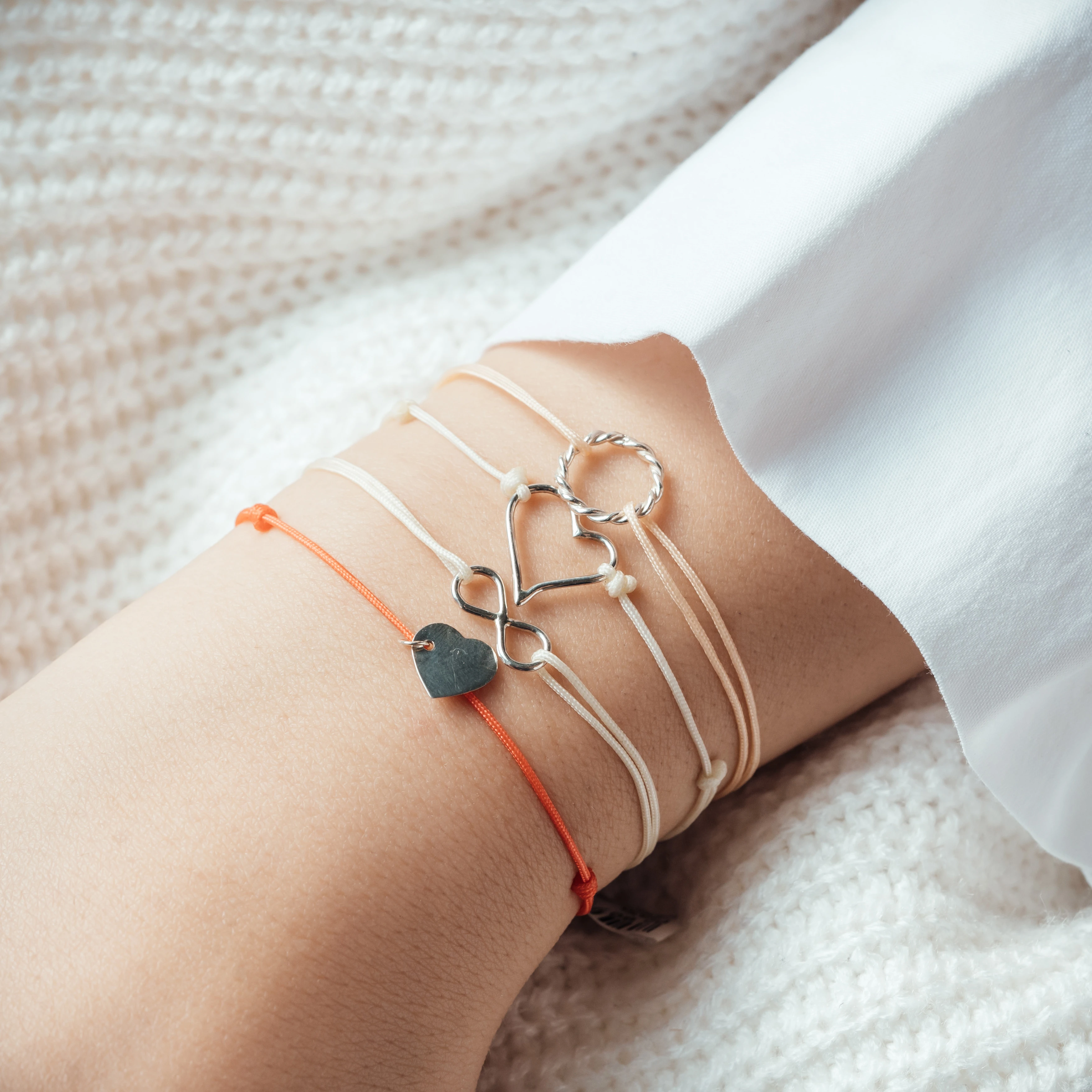 A fonalas karkötőket olyanná tudod formálni, amilyenné csak szeretnéd. A menő outfit érdekében kipróbálhatod a láncos vagy zsinóros karkötők bűbájos opcióját is, amely ultramodern megjelenést kölcsönöz a viselőjének. A karkötő tervezővel pedig saját igényed szerint állíthatod össze a személyes kiegészítődet. A folyamat nagyon egyszerű: kiválasztod a témakörökbe rendezett medálok közül a szívedhez és személyedhez legközelebb állót. Majd következik a karkötő lelke, a fonal, melynek színét is magad választhatod ki. És már készen is van az egyedi, utánozhatatlan, megismételhetetlen kompozíció!