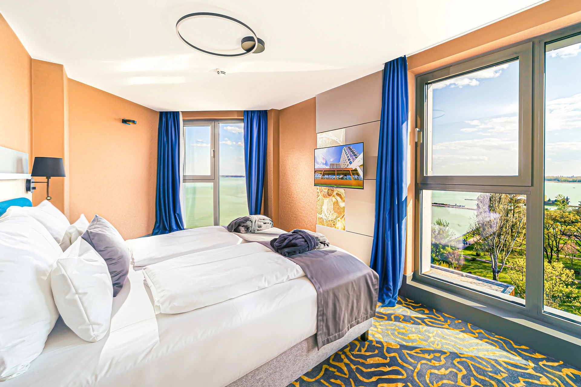 A szállodában több étterem és kávézó is működik, ahol helyi alapanyagokból készült balatoni fogások és nemzetközi kedvencek szerepelnek az étlapon. A gasztronómiai élményeket kulturális estek, koncertek és borvacsorák egészítik ki – itt tényleg minden nap másképp élvezhető.