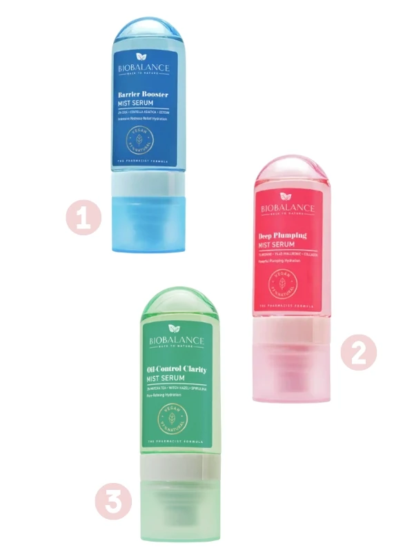A nyári arcápolás egyik alapelve a kevesebb réteg, még több frissítés. Ebben segítenek a szérumpermetek, amelyek egyetlen fújással fellélegzést kínálnak a bőrödnek. A BioBalance bőrfeltöltő hidratáló szérumpermet hialuronsavval tölti fel a bőrt, míg a faggyútermelést szabályozó permet mattítja az olajos csillogást. A bőr védőrétegét erősítő permet nyugtatja az érzékeny bőrt és enyhíti a bőrpírt. Ezek a szérumpermetek könnyen elférnek a táskádban, így napközben is bármikor újrafújhatod őket, akár a sminkedre is.