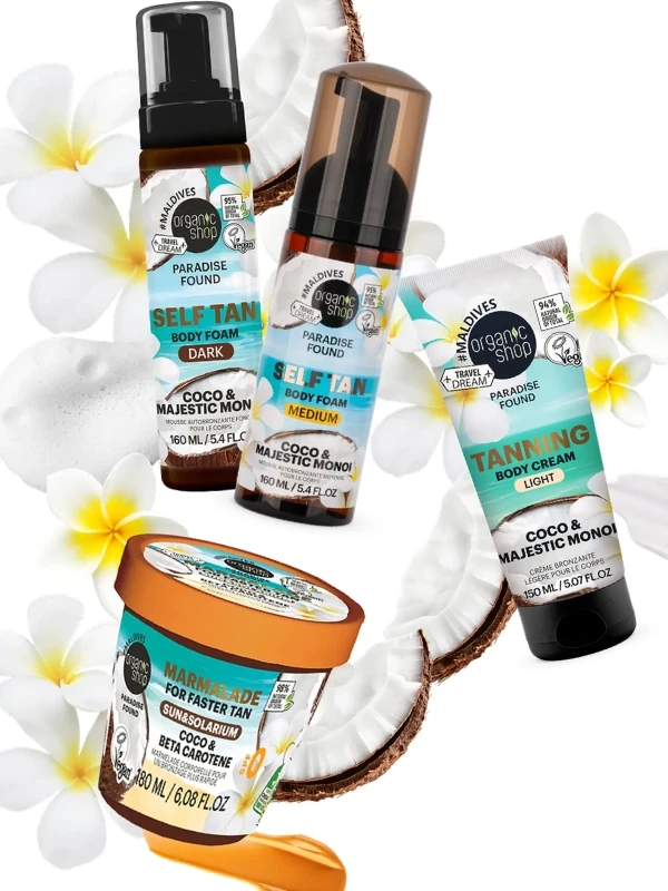 Szeretnél egész évben tartó, napcsókolta bőrt anélkül, hogy kitennéd magad az UV-sugárzás káros hatásainak? Az Organic Shop legújabb megoldásaival ma már kompromisszumok nélkül, otthonod kényelmében is elérheted az áhított aranybarna tónust!