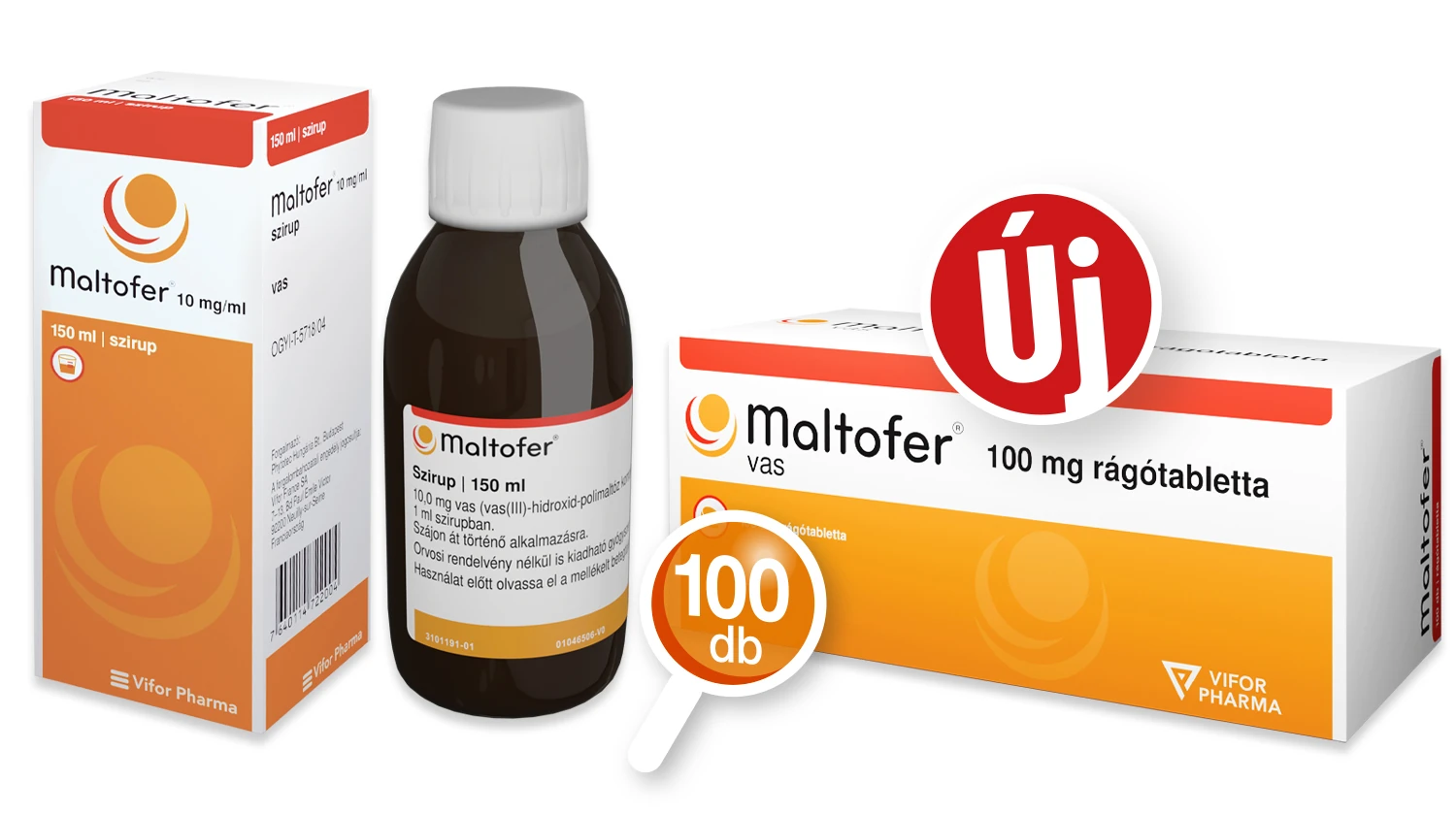 A 100 mg elemi vasat tartalmazó Maltofer rágótabletta már százdarabos kiszerelésben is kapható, nem kell éhgyomorra szedni, sőt, étkezés közben bevéve jobban is hasznosul, és még az emésztőrendszeri mellékhatások is ritkábbak. A Maltofer sziruppal pedig személyre szabva, napi egyszeri vagy több adagban, egyéni ízlésünkre hangolva pótolhatjuk a vasat. Ez a készítmény egyedülálló és jól hasznosuló formában tartalmazza a vasat, bármilyen gyümölcs- vagy zöldséglébe, tejbe vagy kakaóba keverve is bevehetjük. A Maltofer szirup a legmagasabb vastartalmú, vény nélkül kapható folyékony vaspótló gyógyszer – egy üveg akár egyhavi vaspótlásra is elég. A klinikailag igazolt hatású vaspótló gyógyszer, a Maltofer hatóanyaga nem lép reakcióba a leggyakoribb étel- és italösszetevőkkel, gyógyszerekkel. Ezzel együtt fontos tudni, hogy a vashiány okát mindig ki kell vizsgálni, és adott esetben a kiváltó alapbetegséget is kezelni kell a vasraktárak sikeres feltöltéséhez.