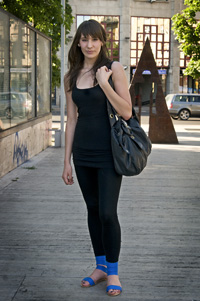 Szandál: Zara Leggings: Zara Póló: Bershka Táska: H& M