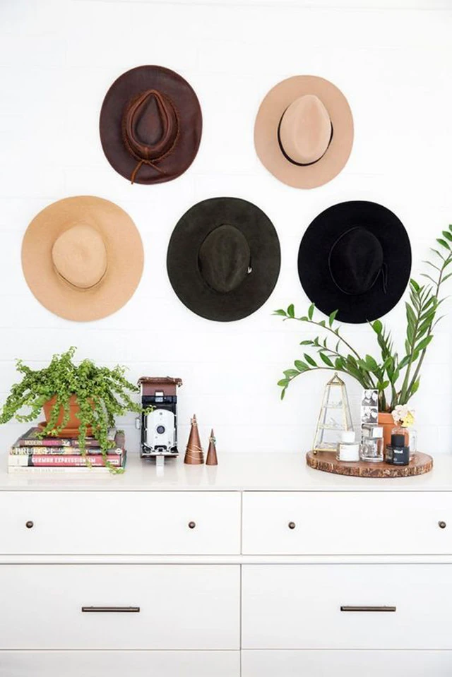 Akaszd fel a kalapjaidat és az ékszereidet a falra. Így nem csak helyet spórolhatsz, de ha ügyesen helyezed el őket, remekül feldobhatják a szobádat is. Emellett a reggeli keresgélés sem veszi majd el az időd, hiszen könnyebben megtalálod a kiegészítőidet.